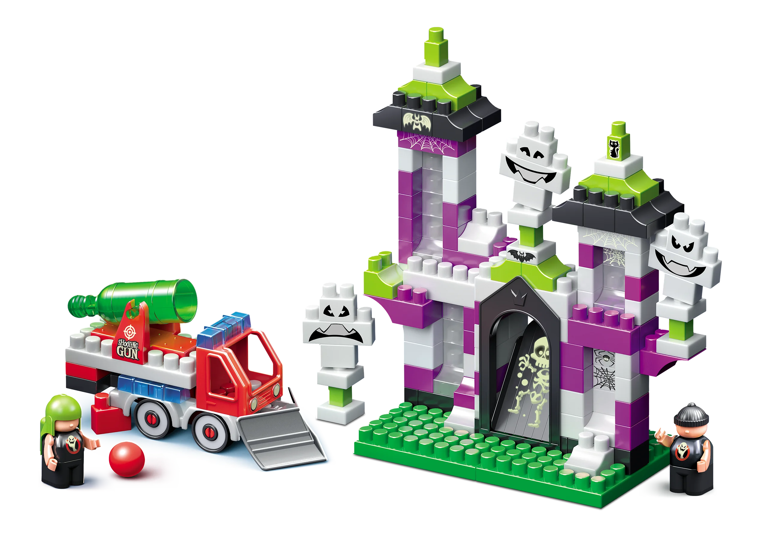 Тематический блочный конструктор, предназначенный для самых отважных охотников за привидениями. Изготовлен из безопасного пластика и пищевых красителей. Предназначен для детей от 3х лет. Комплектация набора: кубики различного размера, предназначенные для строительства дома, детали для строительства машины-пушки, щит на машинку, шарик, две фигурки охотников за привидениями, детали для создания трех привидений, наклейки. Конструкторы BAUER развивают мелкую моторику, аналитические способности, а также стимулируют творческую активность ребенка.