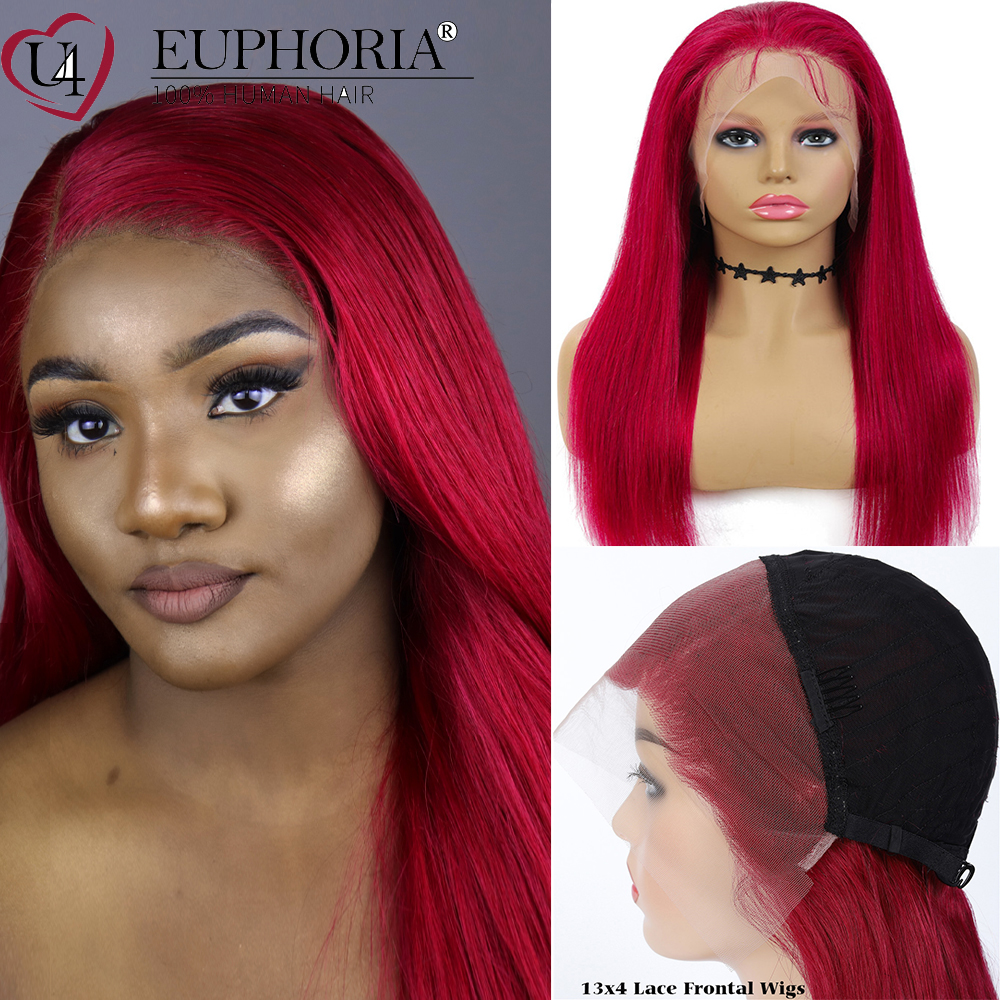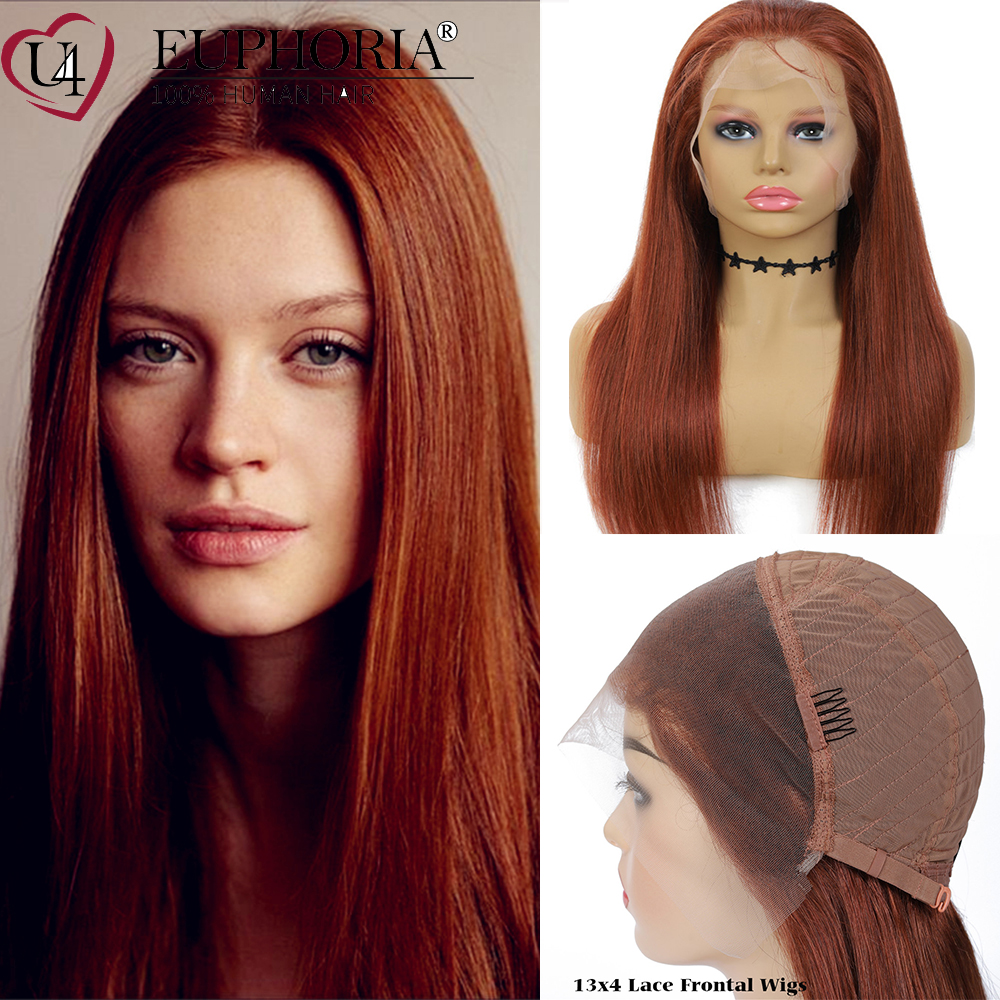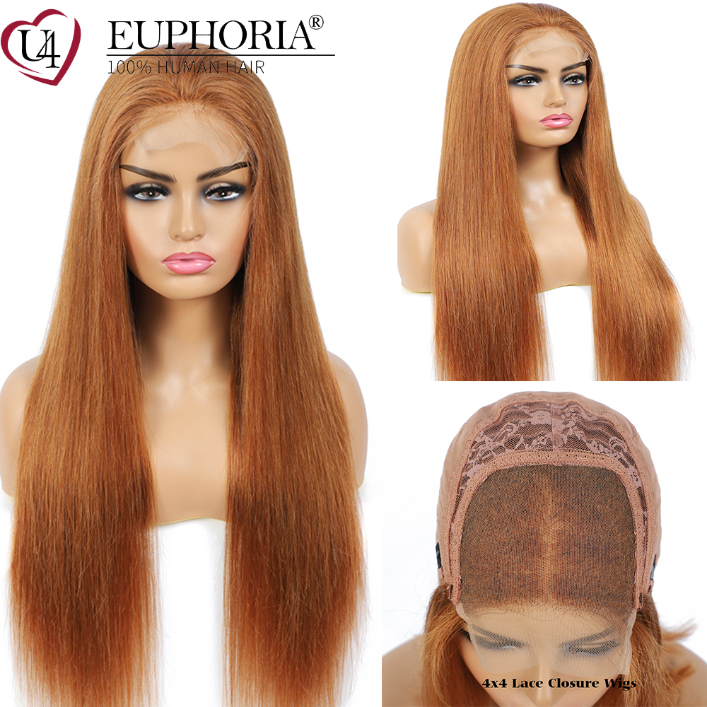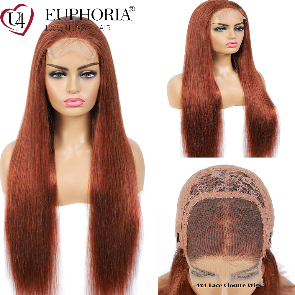 Прямые человеческие волосы, парики на шнурке, 4х4, коричневый, 30, бург, красный, бразильские, 9A, волосы Remy, парики на шнурке, 13x4x1, Эйфория