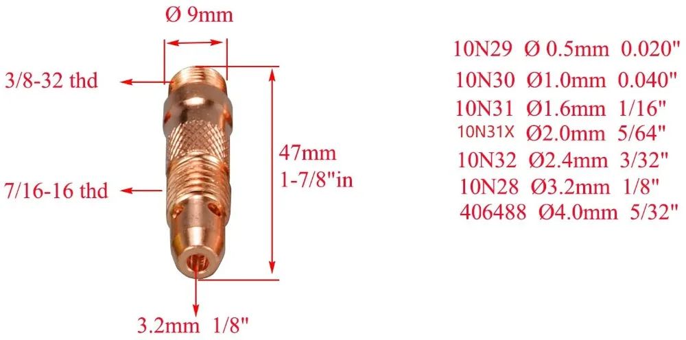 Этот набор подходит для всех факелов с воздушным охлаждением серии 17 и 26 и факелов с водяным охлаждением серии 18, включая PTA-17 Lincoln, PTA-18 и PTA-26, Miller Diamondback DB17, DB18 и DB 26 факелами, вместе с WP-17 Weldcraft, WP-18 и WP-26 факелами