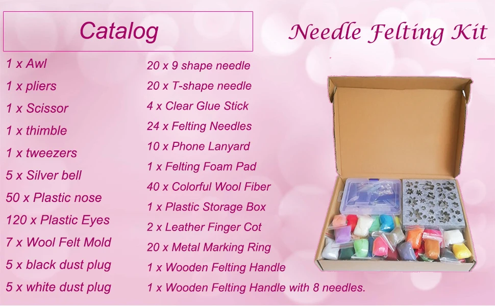 40 разноцветных игл для валяния радужной расцветки: наш набор войлочной ваты включает 40 цветов Шерсть-ровинг, упакован в 40 многоразовых пакетов, вата каждого цвета весит 3 грамма, пушистая и мягкая, яркий цвет s, идеально подходит для изготовления фетра ручной шерсти и поделок своими руками из шерсти. Полный набор для валяния иглой: Этот набор для валяния не только имеет 40 красивых цветов шерстяной пряжи для валяния, но и множество базовых принадлежностей для валяния иглой, таких как иглы для валяния иглой, колокольчики, ножницы, кроватки для пальцев, поролоновая подкладка и т. д. Отличный и компактный стартовый набор для валяния включает в себя все необходимое для валяния иглой.