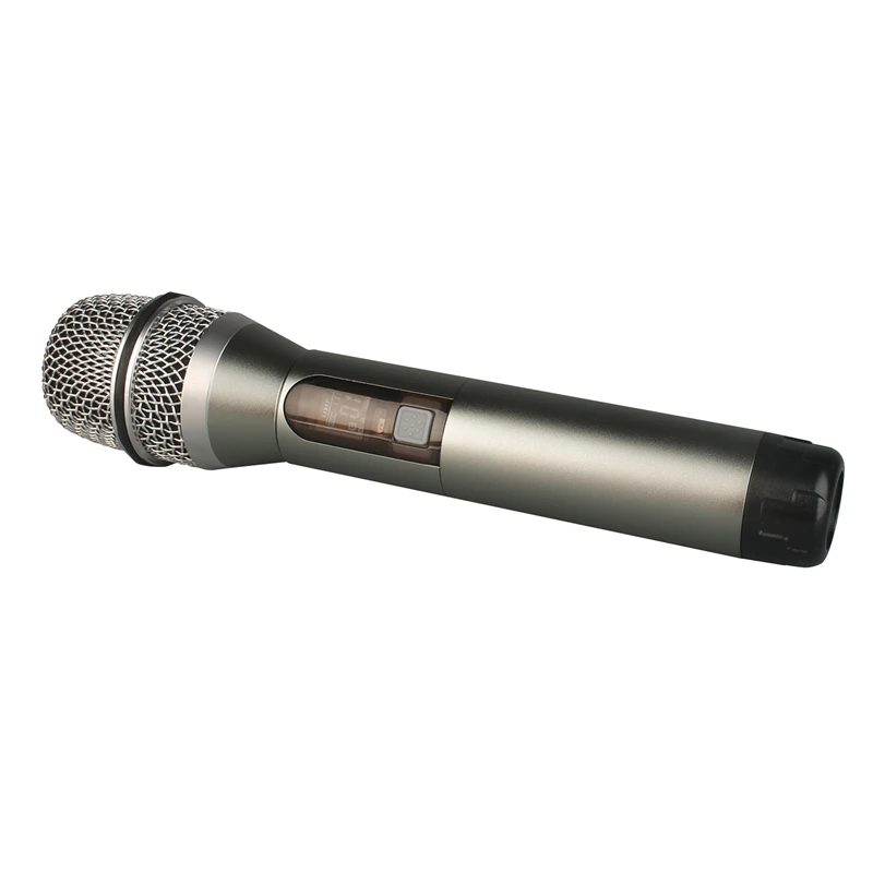 Прочные 4 портативных беспроводных микрофона, каждый канал имеет независимый регулятор громкости. Корпус с металлической встроенной металлической антенной имеет лучшую эстетику и долгий срок службы.