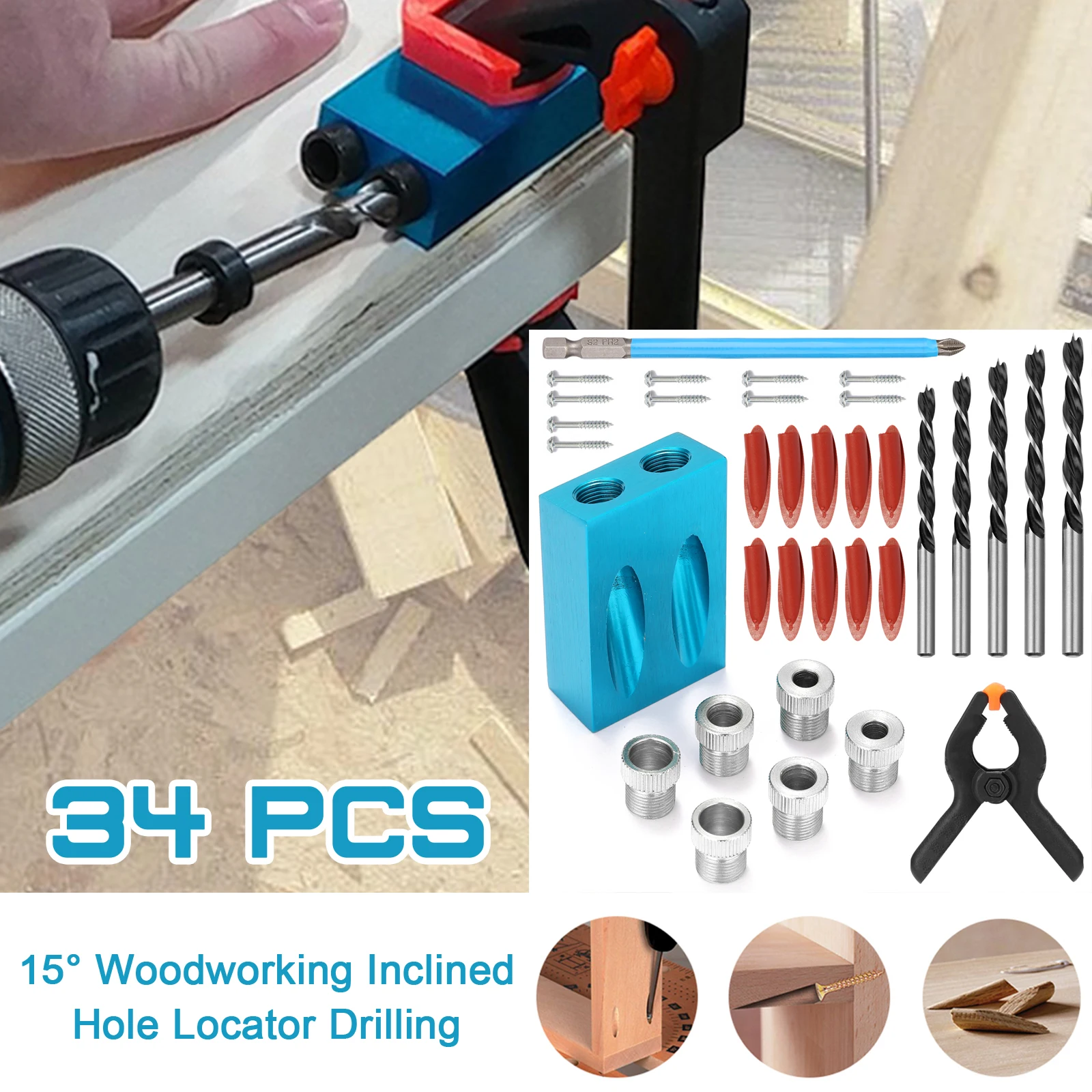Этот деревообрабатывающий Наклонный локатор отверстия 15 ° подходит для различных древесины, набор из 34 предметов может удовлетворить различные потребности, удобный и быстрый, производство алюминиевого сплава, не легко ржавеет, длительный срок службы.