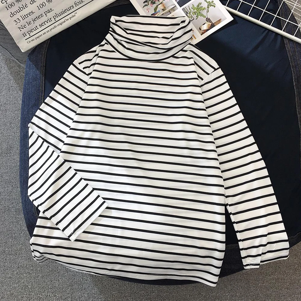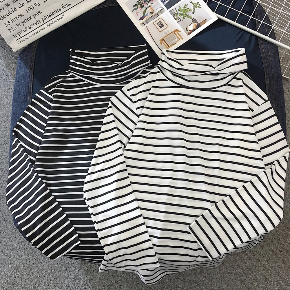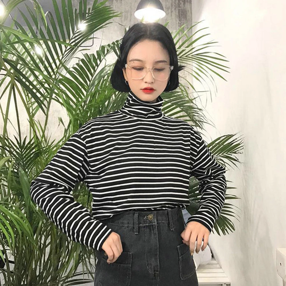 Повседневная Женская Осенняя блузка с длинным рукавом и воротником-черепашкой, горизонтальная Базовая рубашка