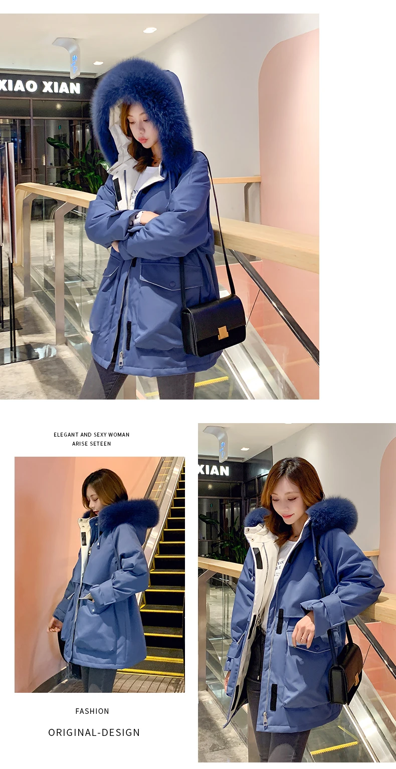 2020 зимнее пуховое пальто с меховым капюшоном для женщин 90% белый пуховик на утином пуху Толстая теплая парка женская верхняя одежда