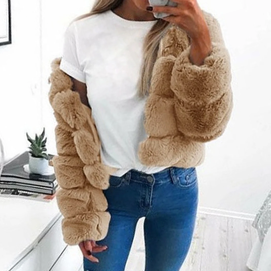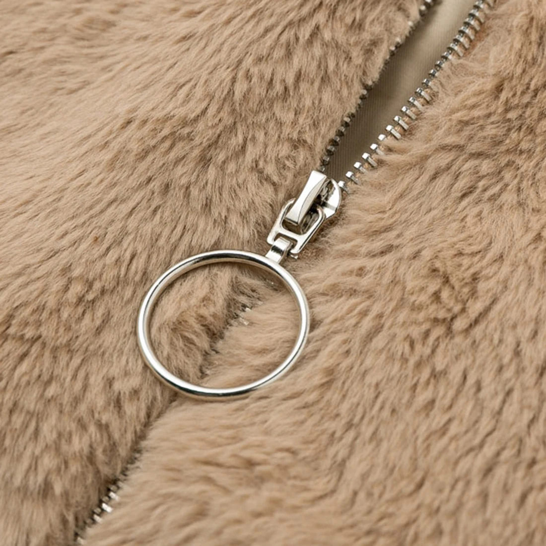 Особенности: Модная плюшевая куртка на молнии с длинным рукавом и лацканами