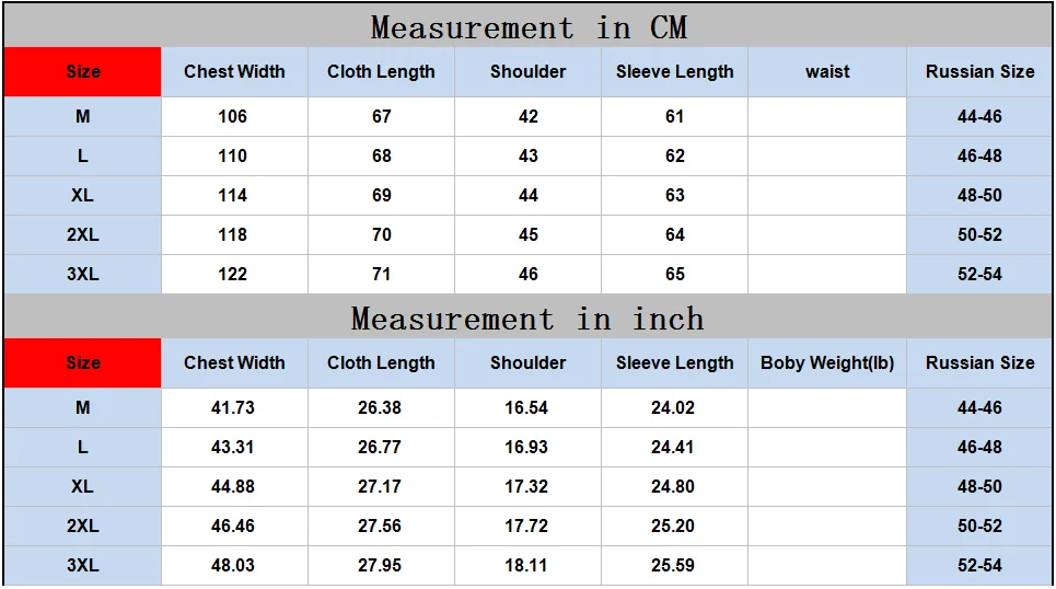 Таблица размеров