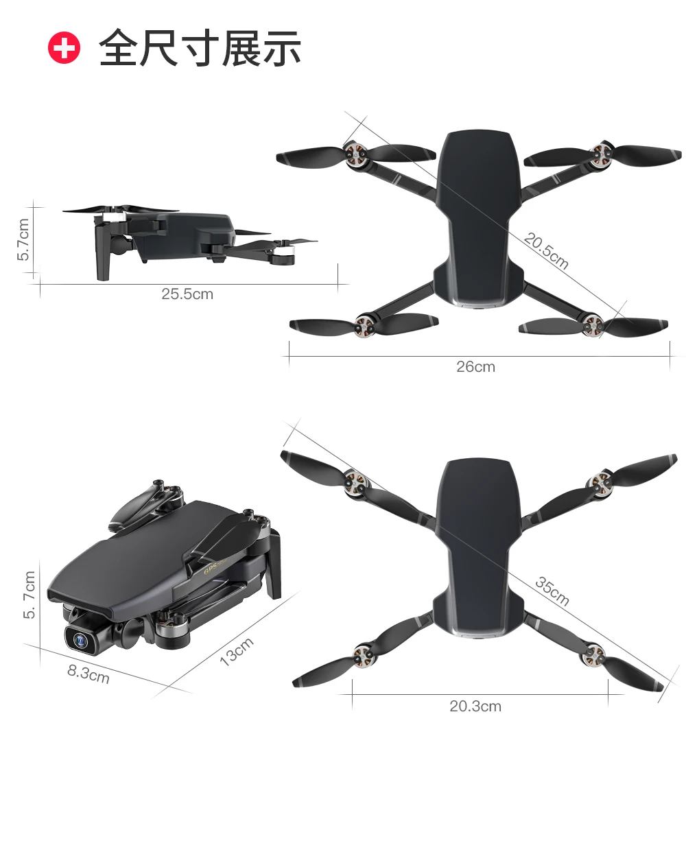 Квадрокоптер SG108 RC | Размеры | 23x19x5 см (в разложенном виде) 13x9x5 см (складной) |