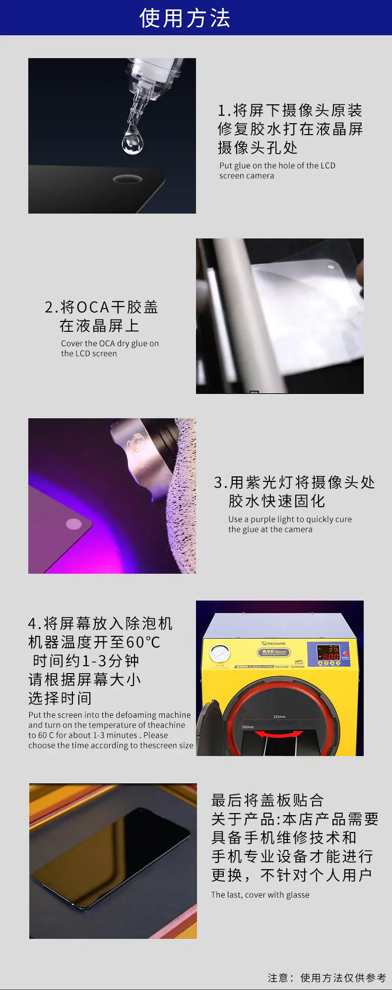Fouces на перфорированном ремонте экрана, решение вопросов, таких как размытая камера, повторный пузырь, пролитый клей, пожелтевшие цвета, сочетается с мастерской службой с профессиональным ремонтом