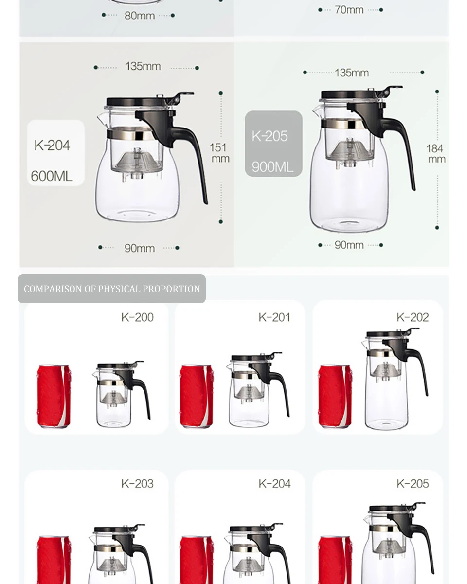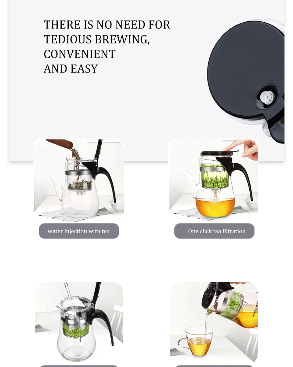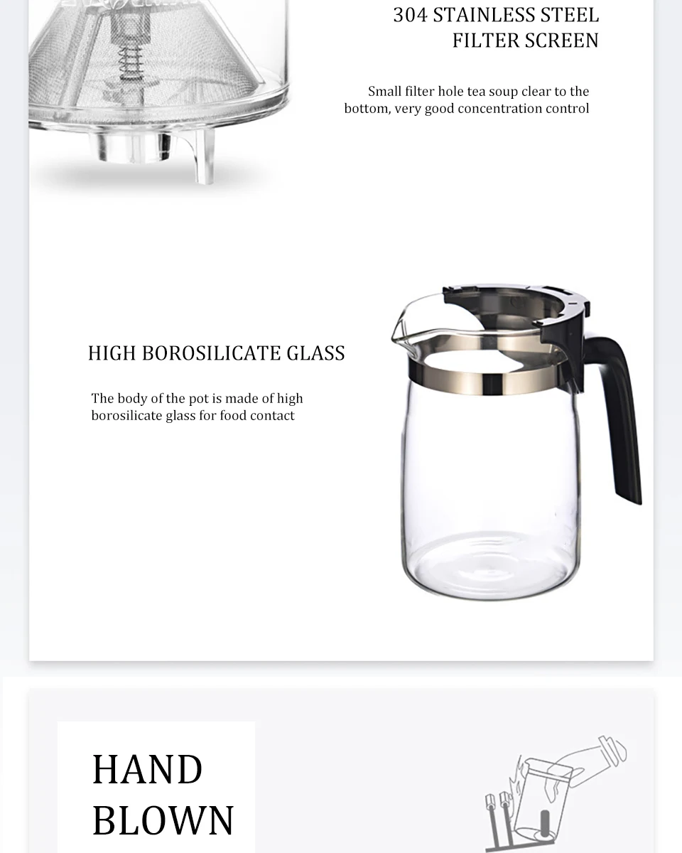 Толстый и прочный: стеклянный чайник изготовлен из высококачественного боросиликатного стекла и пищевой нержавеющей стали 304, без BPA, без свинца и других токсичных химических веществ, хорошо защищает ваше здоровье.