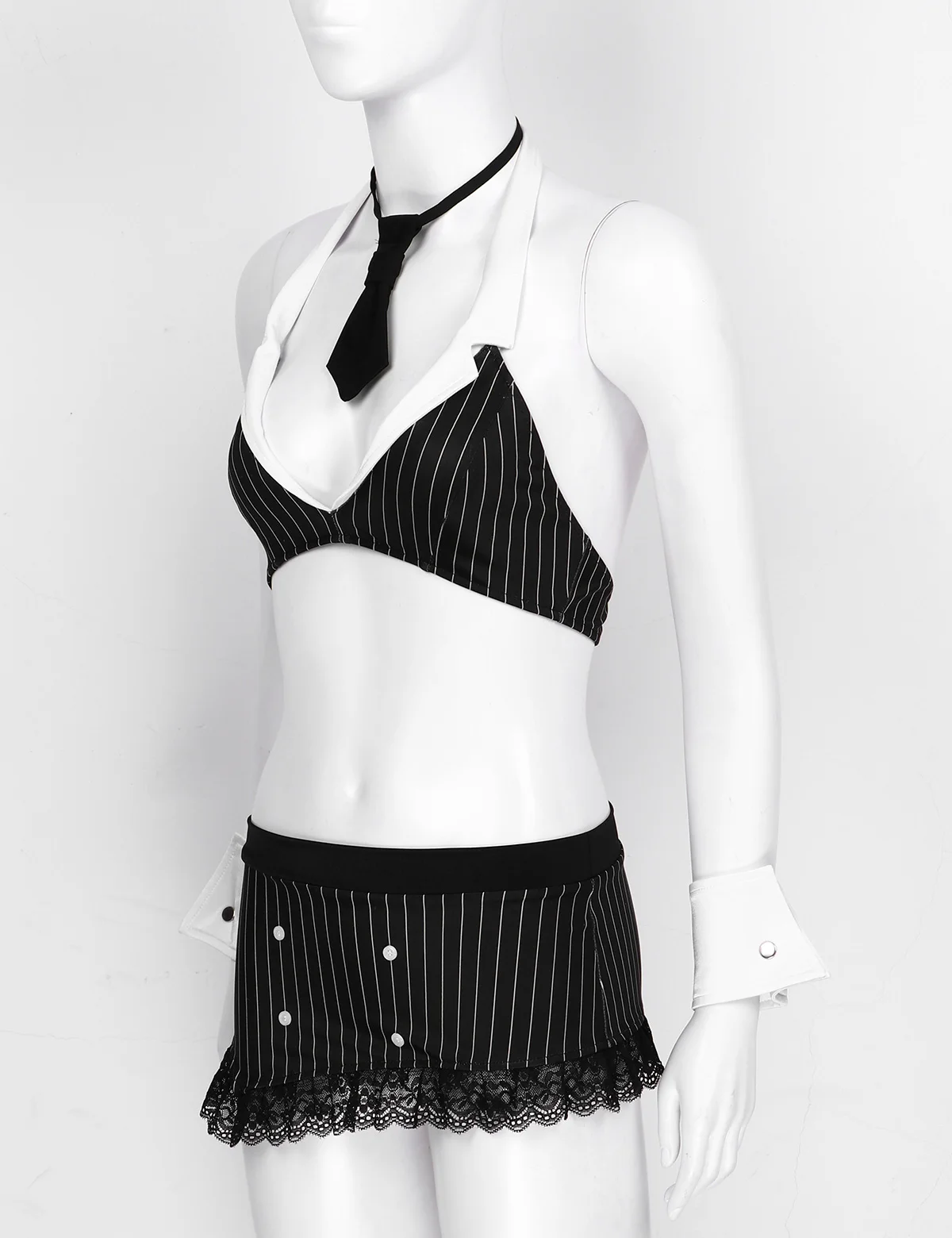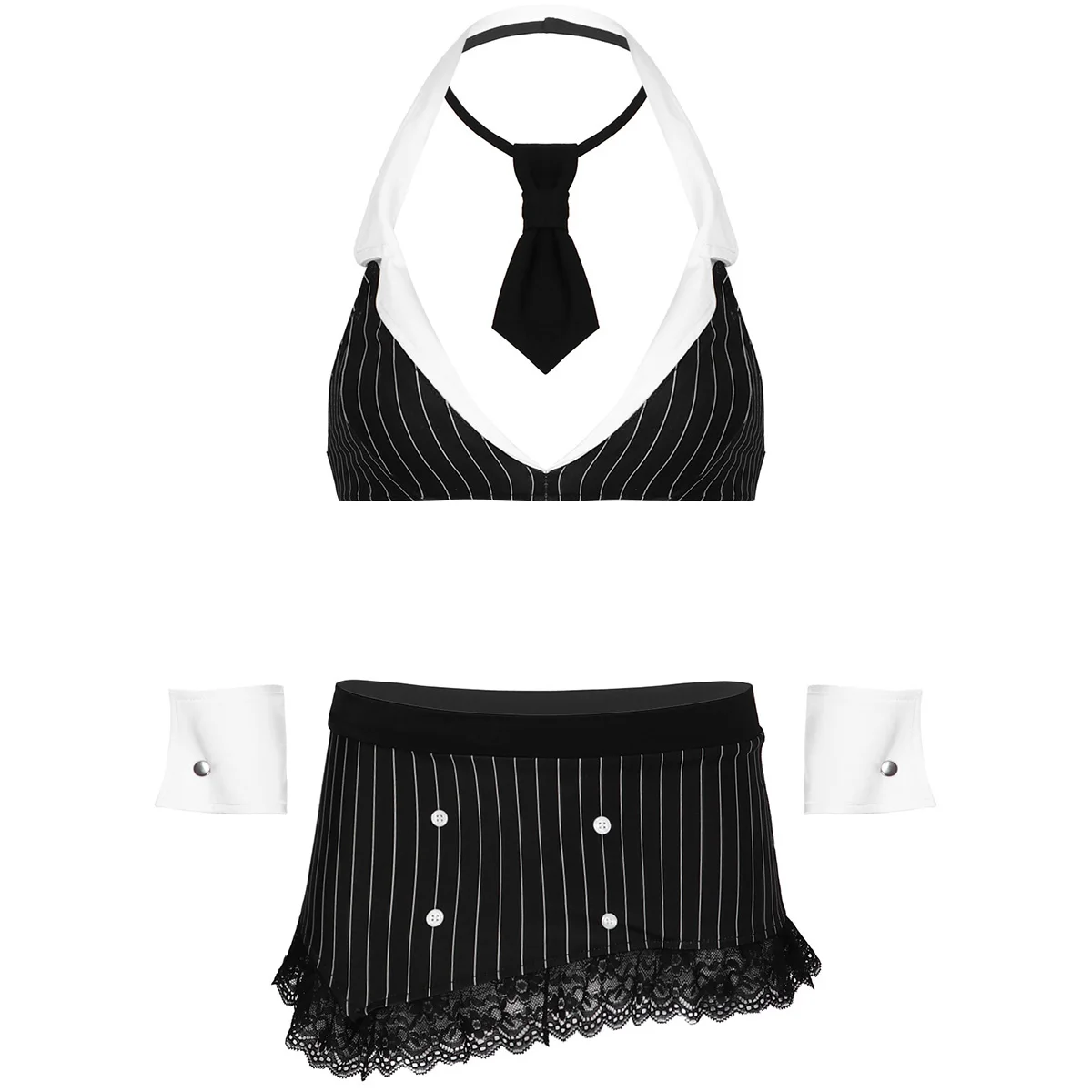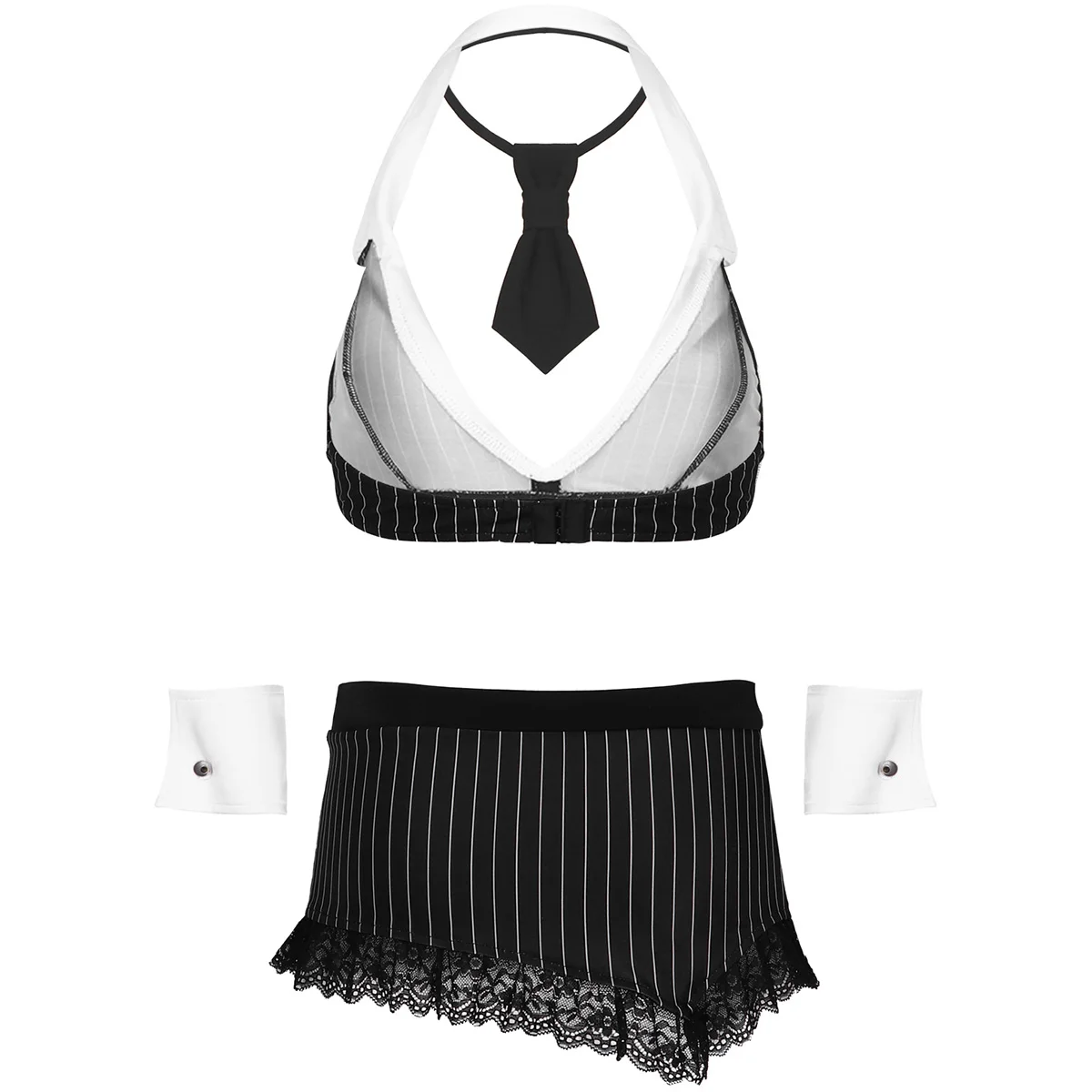 Комплект включает в себя: Топ с бюстгальтером 1 шт., юбка 1 шт., галстук 1 шт., манжеты 1 пара
