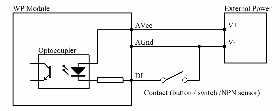 Данные цифрового ввода «05», они будут «00000101» после преобразования в бинарные данные. Последние четыре бит данных соответствуют DI_04 ~ DI_01. Это означает, что DI_03 и DI_01 включены.