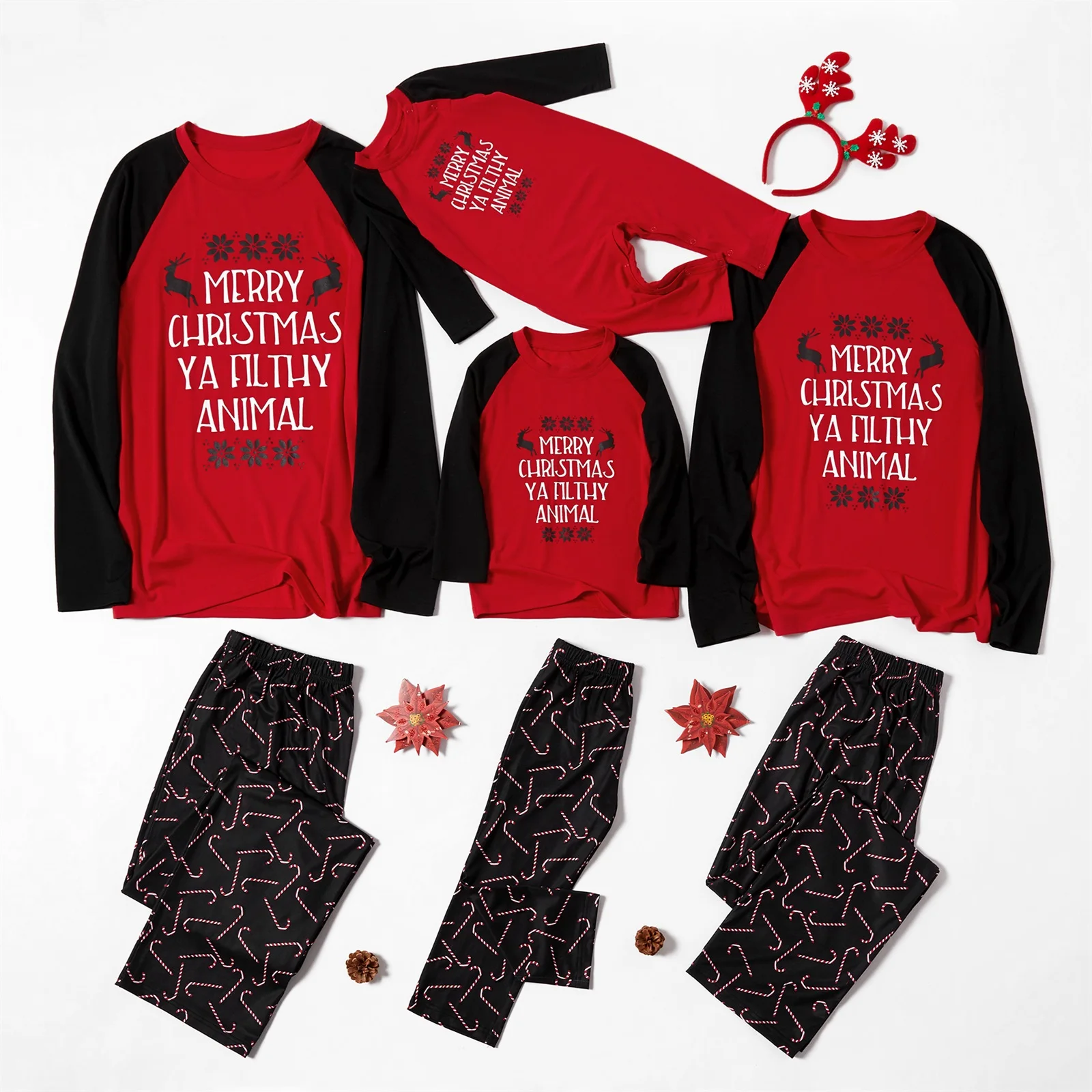 Пижамные комплекты с принтом рождественских букв для всей семьи (огнестойкие)