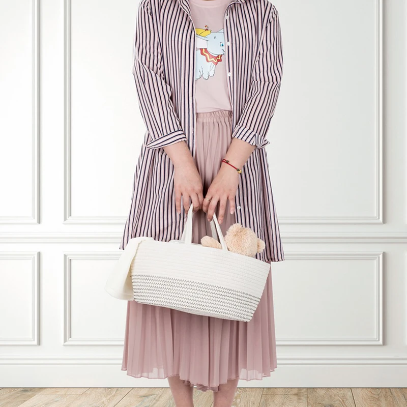 Эта корзина из хлопковой веревки не просто используется как простая корзина для подгузников, но и для большего использования, такого как корзина для пикника, корзина для детской и ручной органайзер для хранения, когда ваши малыши вырастут. Это никогда не будет пустой тратой, и она равна нескольким корзинам за одну цену.