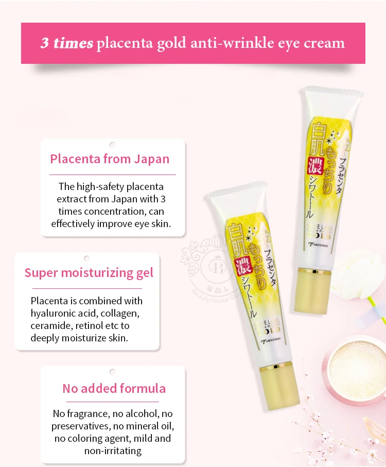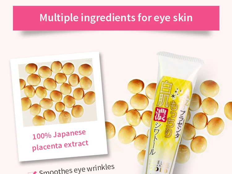 С высоким уровнем безопасности экстракт плаценты из Японии с 3 раза концентрации, может эффективно улучшить кожу вокруг глаз.