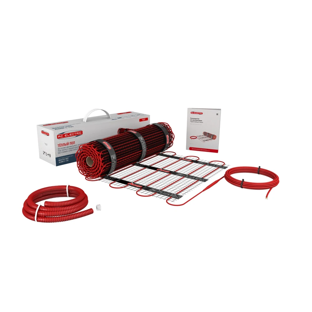 Кабельные системы обогрева AC Electriс на основе нагревательных матов, предназначены для комфортного обогрева поверхности пола в помещениях различного назначения и поддержания оптимального теплораспределения в помещении в течение года. Нагревательные маты AC Electriс не требуют обязательной установки в бетонную стяжку, укладываются непосредственно в клеевой раствор для крепления плитки. Используются в случаях, когда необходимо поднять уровень пола на минимальную высоту. Комплектация Нагревательный мат Гофрированная труба Заглушка для трубы Инструкция по монтажу Гарантийный талон Упаковка