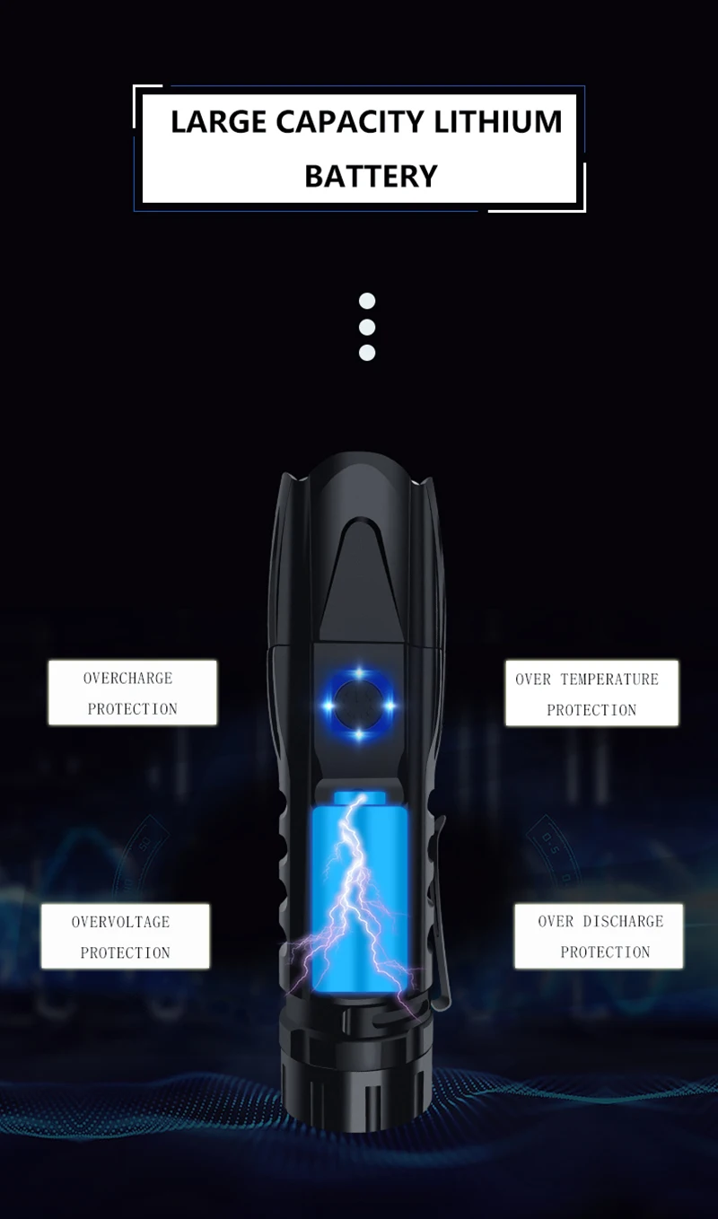 Производитель: Litwod Модель: 1476Источник света: XHP70.2Цвет внешнего вида: черный5-ступенчатый режим: 100% -50% -Flash Размер: 164 мм × 43 мм × 32 мм Питание: 1 батарея 26650 или 1 батарея 18650 Время освещения: аккумулятор 18650 1-2 часа; 26650 аккумулятор: 6-12 часов Метод зарядки: прямая зарядка через Micro USB Диапазон: от 200 до 500 метров Зум: зум-объектив (увеличение / уменьшение )Водонепроницаемость: IPX4 Вес: 210 грамм (без аккумулятора) Материал: авиационный алюминий T6063-T6Банк питания: ПоддержкаИспользование: семья, охота, патрулирование, строительство, прогулки, техническое обслуживание, поиск и спасение.