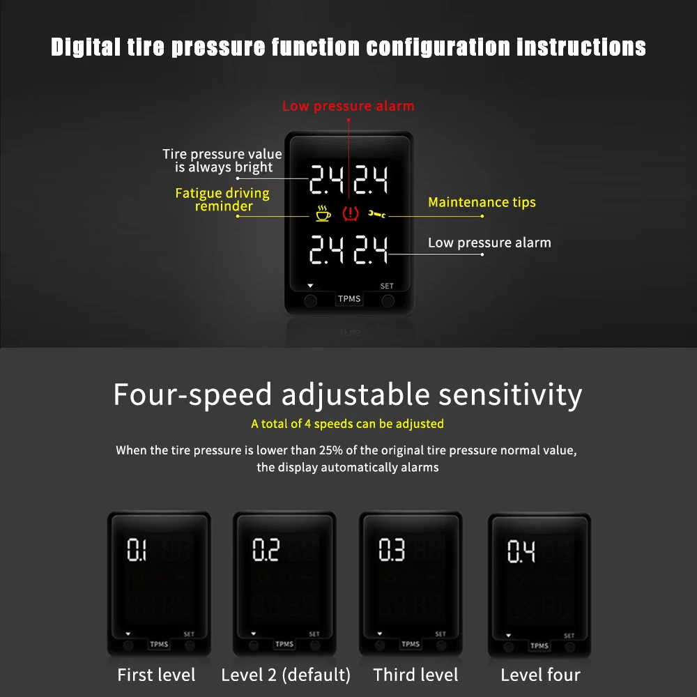 Использование немецкой программы Infineon, высокая точность, низкое энергопотребление, стабильная производительность. Аккумулятор большой емкости, длительное время работы в режиме ожидания, внешний аккумулятор до 1-3 лет. Зарядное устройство, солнечный двухконтурный источник питания. Удобная и быстрая установка, сделайте это самостоятельно, вы можете завершить сопряжение установки. Можно наклеить на лобовое стекло или поместить на приборную панель, три цвета, более богатый выбор.