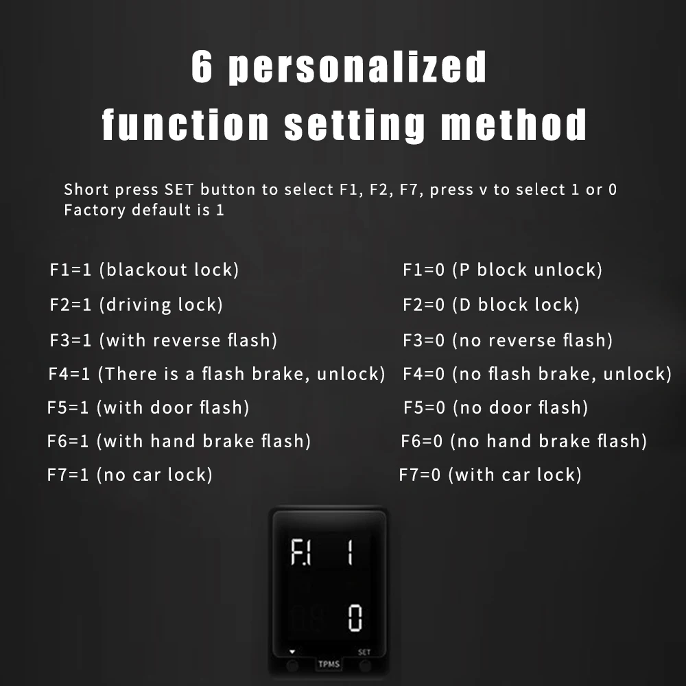 Цвет: черный Материал: ABS + PC электронные компоненты Функция: контроль давления в автомобильных шинах, автоматический дверной замок и т. д. Адаптированные модели: для Toyota Highlander (08-14), Vios (08-13), Corolla (08-13), RAV4 (03-12), Yaris (08-13), сенна (11-14), Ayr Law (07-10) Инструкции по использованию: Для получения подробной информации обратитесь к Руководству по эксплуатации. Примечание: Пожалуйста, подтвердите, может ли ваша модель быть использована перед покупкой. Если вы не подтвердите, пожалуйста, пришлите нам модель и год. Размер продукта: 4,9*3,4*2,3 см; Длина: 90 см
