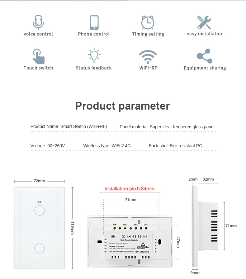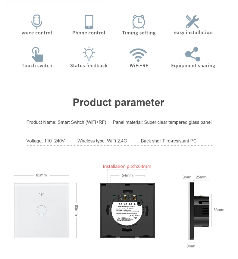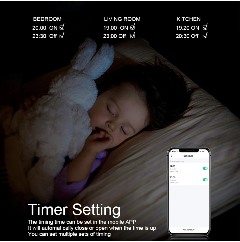 【Timing】интеллектуальный таймер автоматически включается после установки таймера для этого переключателя, который необходим для ежедневного планирования, и приносит Вам комфортный и умный образ жизни