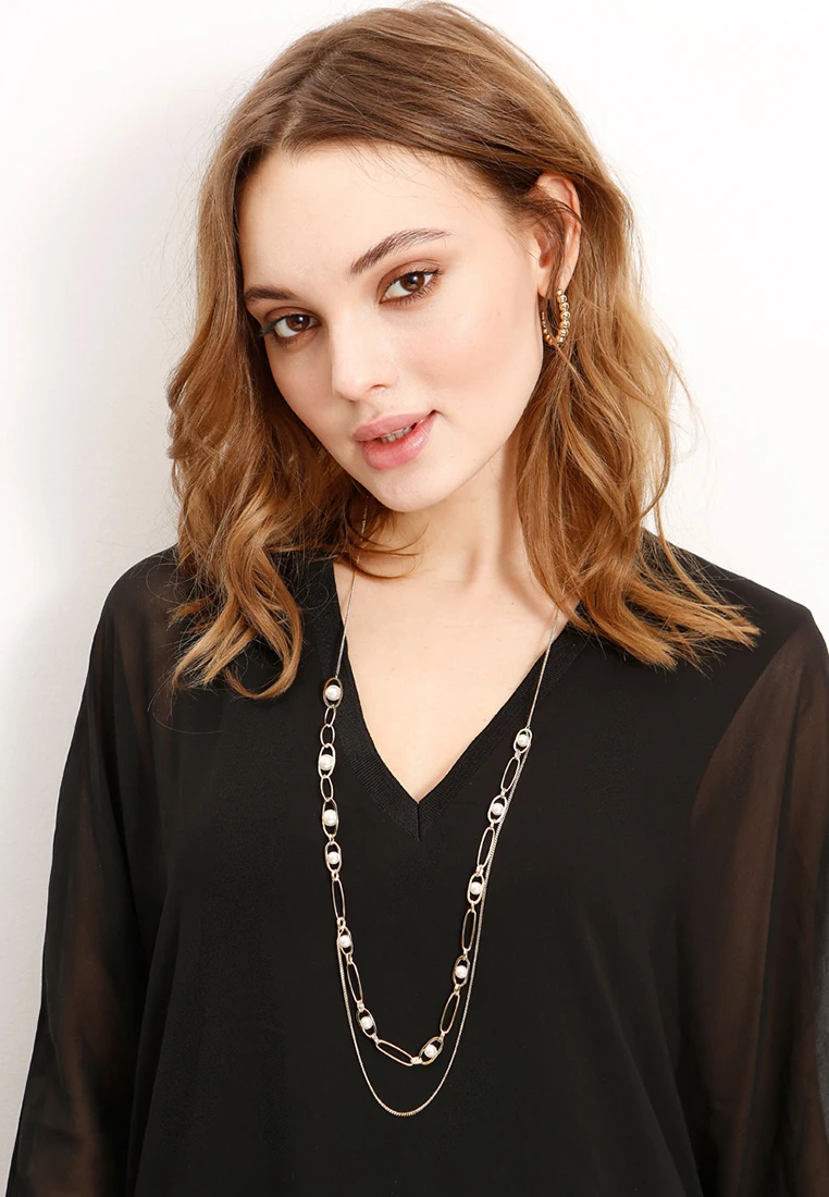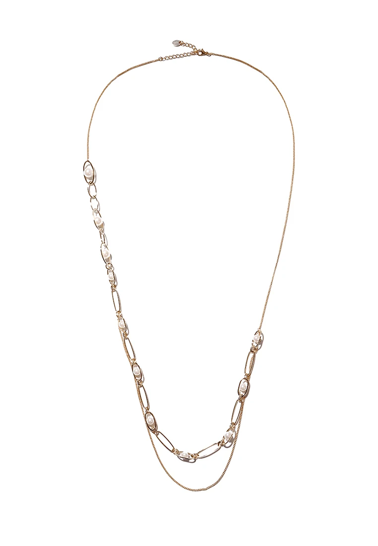 Изящное колье изготовлено из золотистого бижутерного сплава и жемчуга.