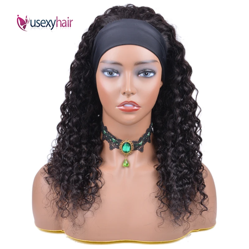 ❤Парик с головной повязкой, водно-вьющиеся человеческие волосы, бразильские человеческие волосы, повязка на голову, манекен для шарфа парика, бесклеевая полная машина, парики Remy для черных женщин