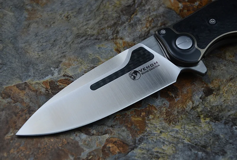 Общая длина: 8,66 ”(220 мм) Длина лезвия: 3,86 ”(98 мм) Толщина лезвия: 0,16 дюйма (4 мм) Материал лезвия: углеродное волокно Bohler M390 Твердость лезвия: HRC59-61 Шлифовка лезвия: плоская Обработка лезвия: кованая поверхность Длина ручки: 4,80 ”(122 мм) Общая толщина ручки: 0,70 дюйма (17,9 мм) Материал ручки: углеродное волокно из титанового циркониевого сплава 6ALAV/Thomas Обработка ручки: мойка черного камня Материал зажима: титановая гелиевая трубка 6AL4V Материал винтов: 420c Материал шайб: Керамический шарикоподшипник Вес: 142 г/5,0 унции Стандарт: сумка для нож VENOM