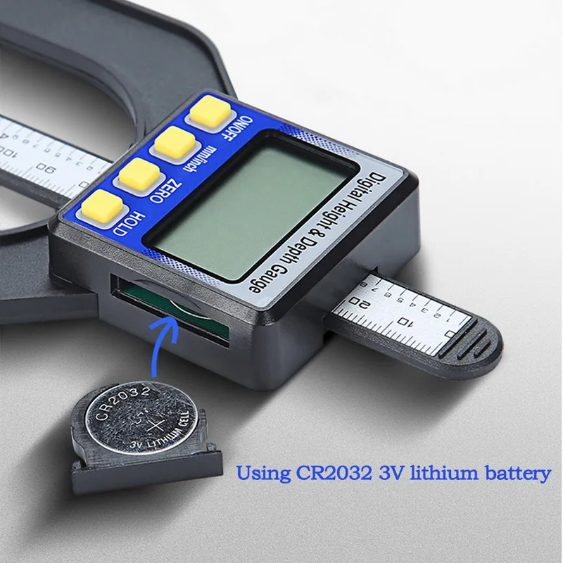 Цвет: черный + синий/красный + черный/розовый + белый + черный материал: инженерный пластик размер изделия: 152*100 мм Вес изделия: 100 г Диапазон измерения: 0-80 мм Разрешение: 0,01 мм отверстие: материал подошвы: полиуретан толщина 0-50 мм единицы измерения: мм/дюйм чтения: цифровое считывание Батарея: 1 * 3В Батарея посылка включает в себя: 1 * высота глубиномера (Батарея входит в комплект)