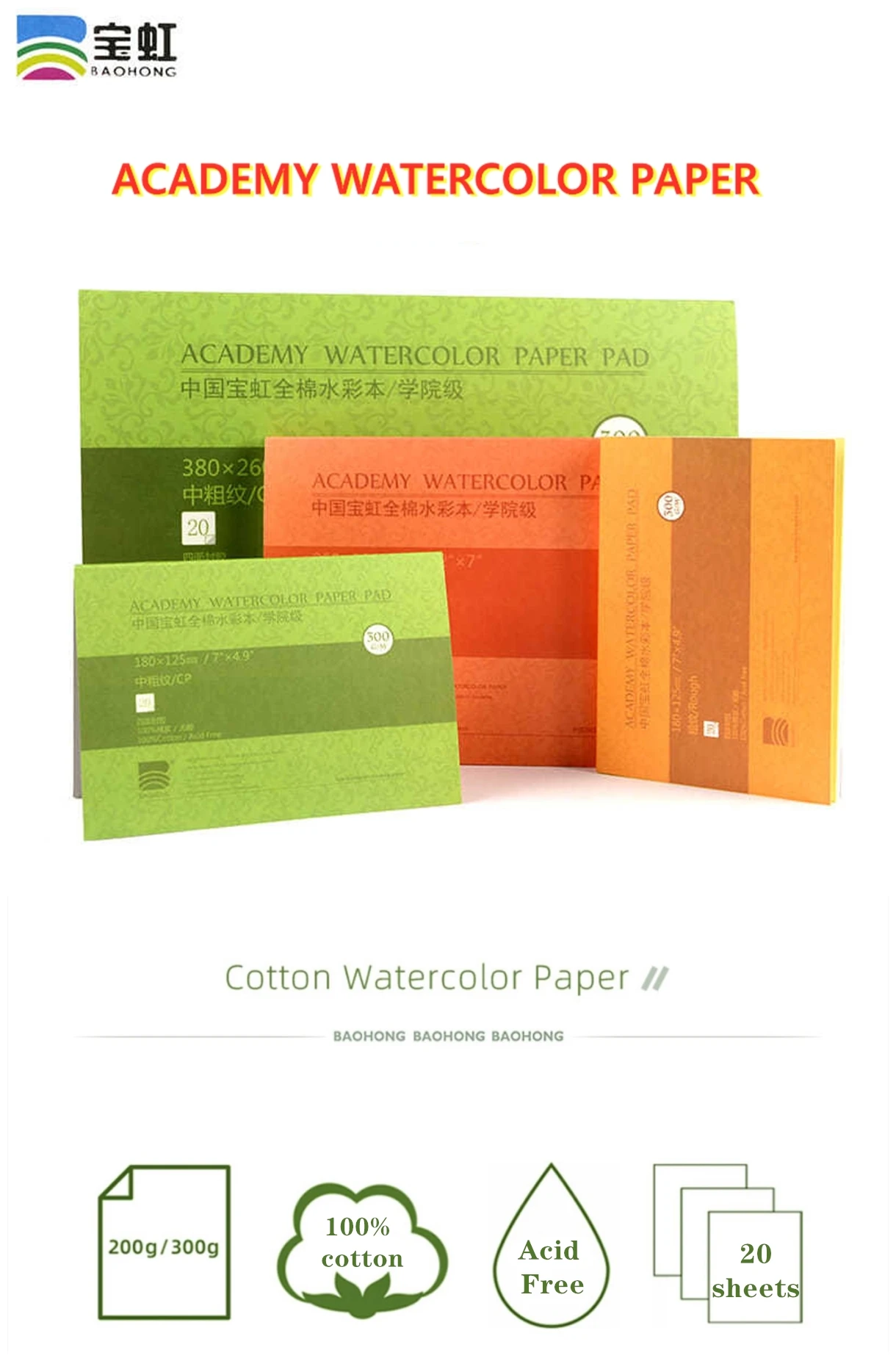 Название: Baohong Акварельная бумага Материал: хлопковая целлюлоза Переплет: 20 листов/книга Размер: 180*125 мм (7 ''* 4,9"). 260*180 мм (10,2 "* 7"). 380*130 мм (14,96 "* 5,11").......... Устройство: акварельная живопись Акварельная рисованная иллюстрация Водорастворимый цветной свинцовый рисунок Характеристики: устойчивость к царапинам, может быть изменена, естественный белый. Примечание: Это Бумага Из Хлопчатобумажной массы, а не бумага из древесной массы. Это идеально, и вы этого заслуживаете. Хлопковая целлюлоза, акварельная бумага делится на (тонкое зерно, среднее зерно, грубое зерно) текстуру чистого, стойкого скраба. Можно модифицировать, натуральный белый, подходит для акварельной живописи