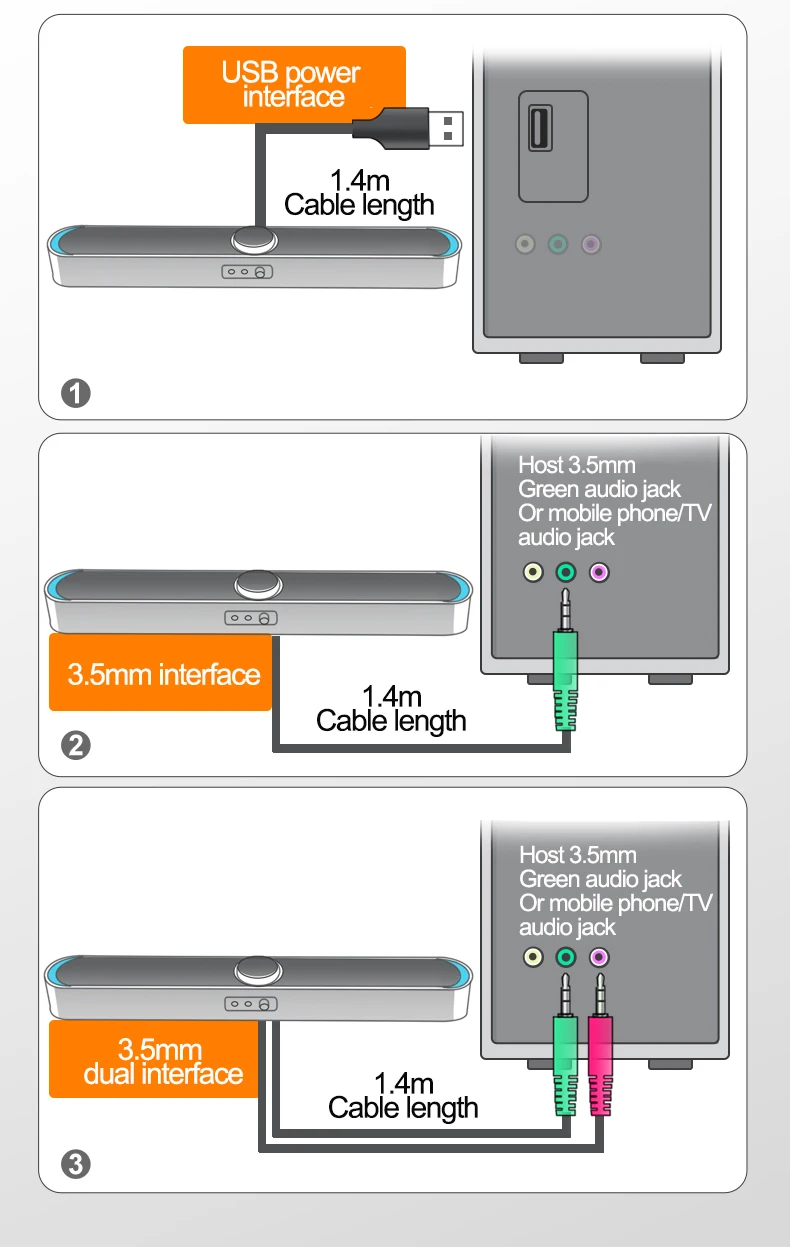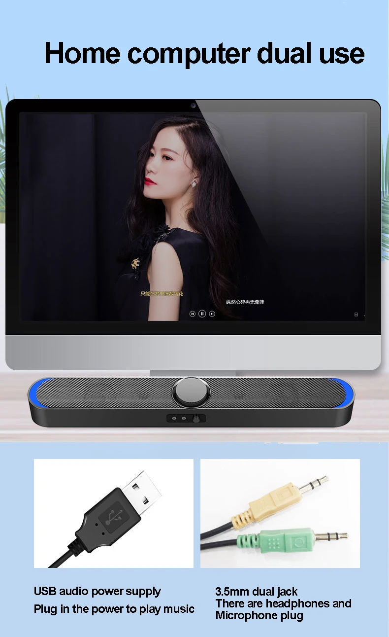 Frequency Range: 25HZ-20KHZ Two bass speakers design, restore live version of the listening experience, so you can enjoy the perfect experience at home. Concealed body is small and simple, does not take up space. 2 high power speakers and bass technology for 3D sound 360°Surround Sound Mixing music experience. Mini strip design, is full of atmospheric fashion. 3.5mm interface connection methods, can be used as computer audio equipment, widely compatible with smart devices. With a 3.5mm jack Microphone, plug and play, it could use for chatting, not use for singing. Connection Method: 3.5mm interface Separation: 40DB(Greater than or equal to) Power: USB SNR: 80DB(Greater than or equal to) Current: 600mAh Place of Application: Household / Office Product Weight: 800 G / 28.22 Ounces Product Dimensions (L*W*H): 480*65*60 MM / 18.90*2.56*2.36 Inches Package Weight: 870.0 G / 30.69 Ounces Package Dimensions (L*W*H): 516*95*80 MM / 20.31*3.74*3.15 Inches Retail Packaging: Yes, Colored Box