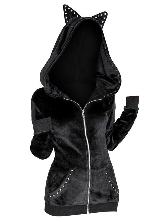 Wipalo, женские шикарные куртки с капюшоном в готическом стиле, панк, большие размеры, черное Свободное пальто на молнии, Осень-зима, повседневные куртки на молнии с отделкой Люверсами