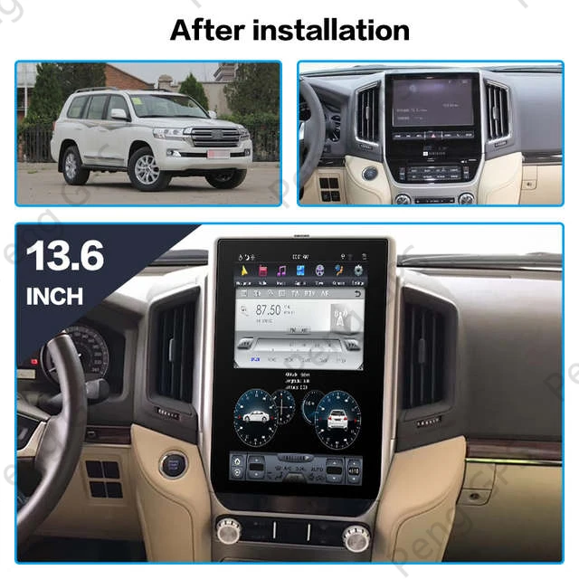 13,3 дюймов специальный автомобиль стерео Fit Для Toyota Land Cruiser LC200 2016-2019 ОС: Система Android 9,0 CPU: Rockchip PX6(3399) Cotex A72 (1,8 ГГц) + A53 (1,4 ГГц), 6 жил Память DDR3 4 Гб Встроенный 32GB/64GB Inand, поддерживает максимум 64G TEF6686 радио + QCC3008 BT 5,0 + TDA7851 усилитель GPS + AUX IN + DVR + Простое подключение + HDMI + DSP