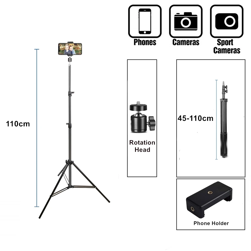 1. 4 секции регулируемой высоты с фиксирующей пряжкой, этот штатив для селфи может быть расширен, легкий и легко носить с собой, вы можете взять его везде, куда бы вы ни отправились.