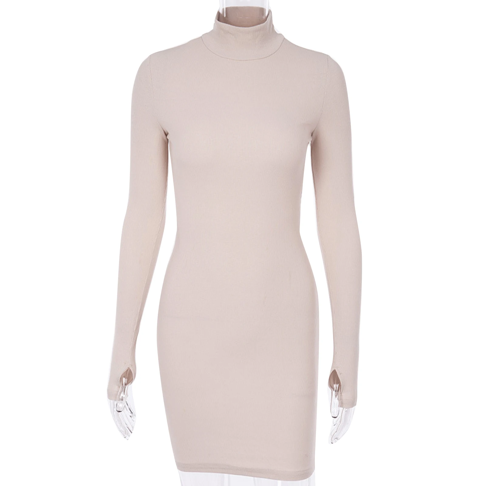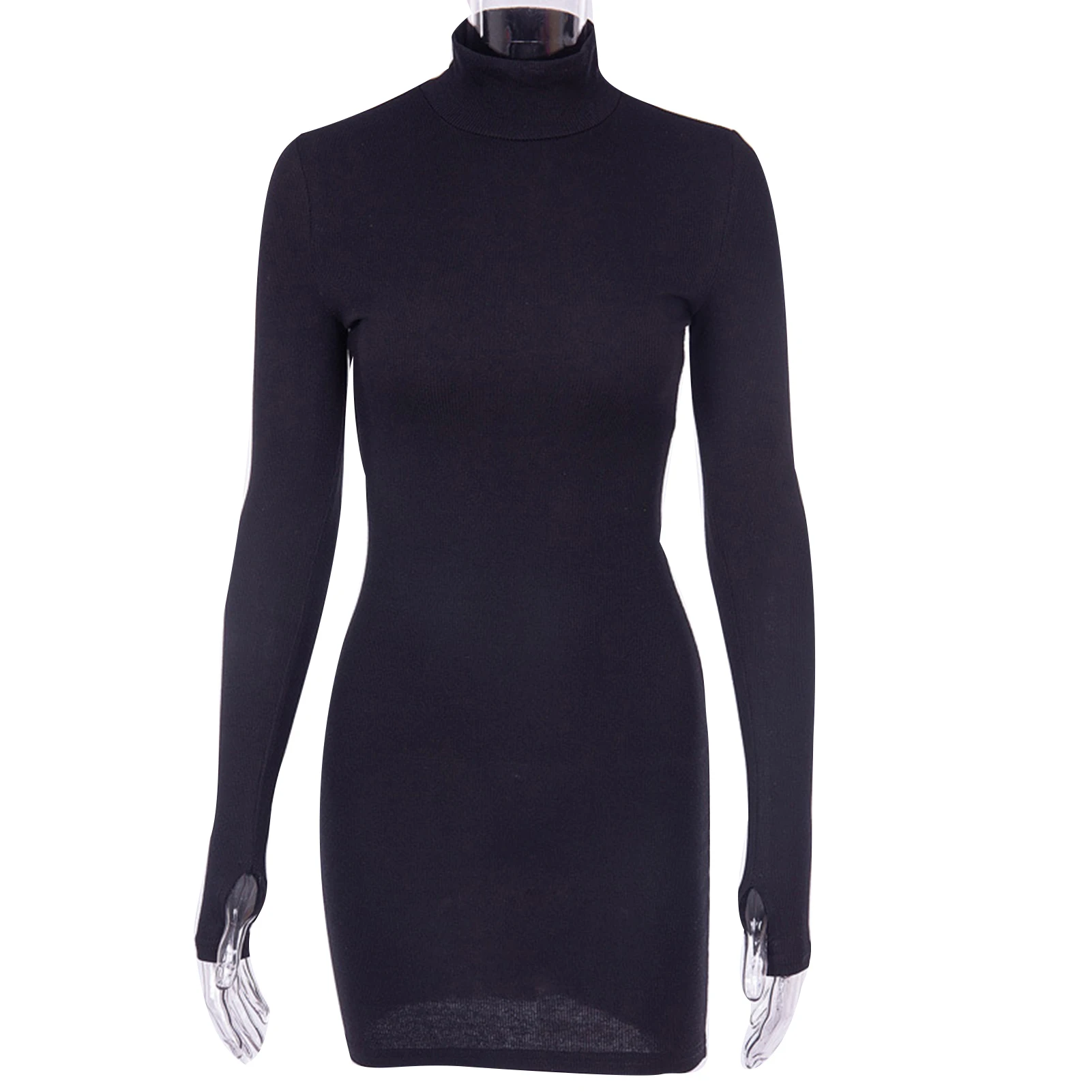 Сексуальная Женская Осенняя однотонная Водолазка с длинным рукавом облегающее мини-платье Клубная одежда