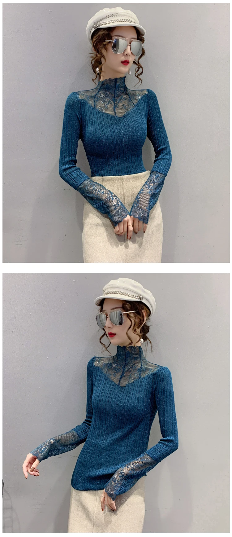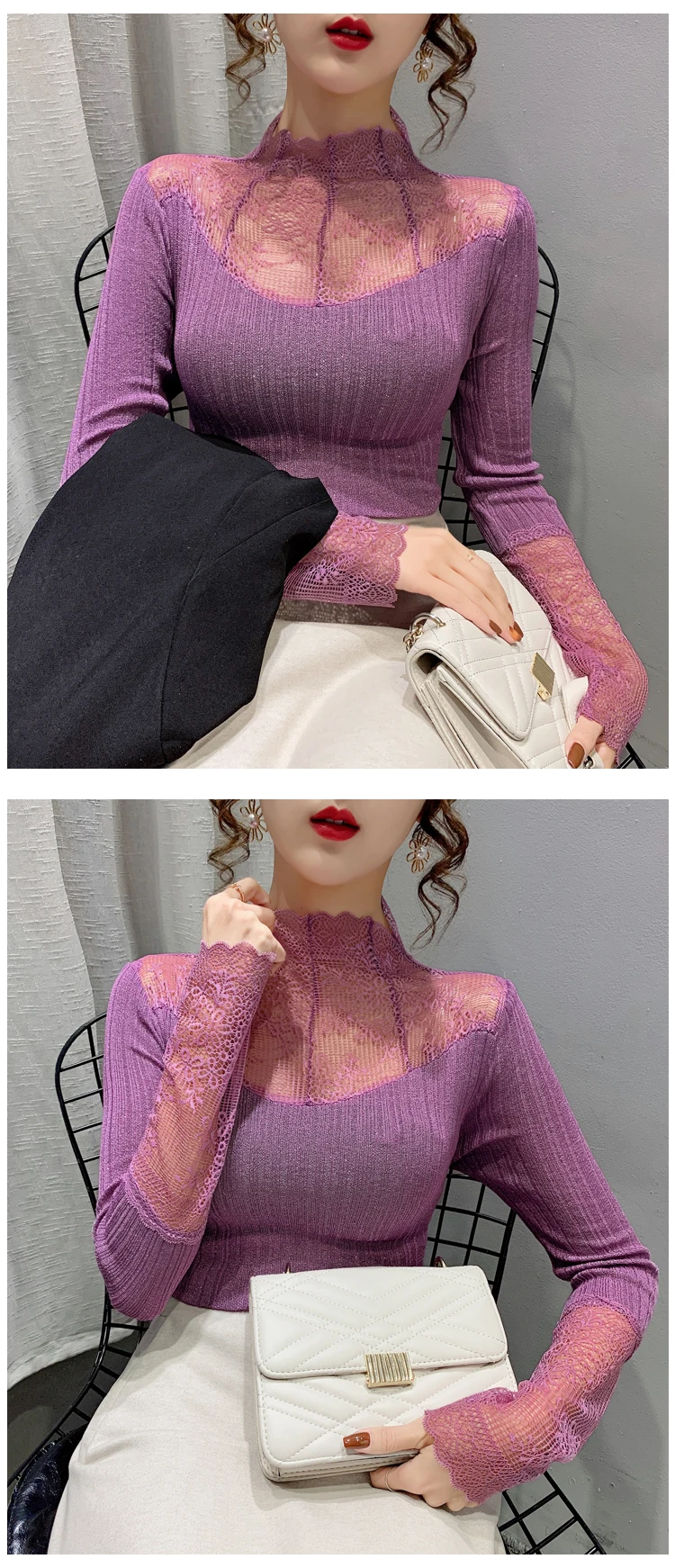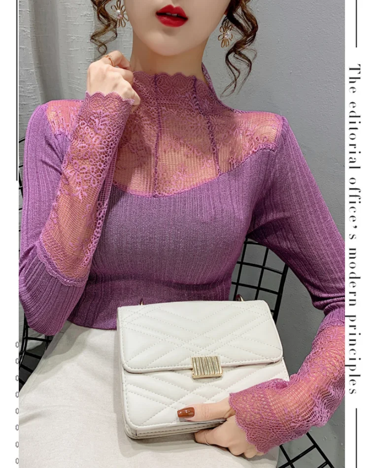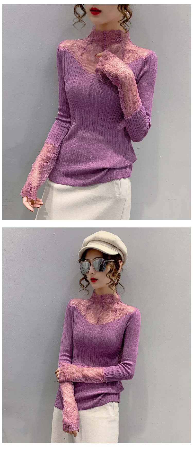Название продукта: Модный кружевной вязаный свитер и трикотажные футболки.