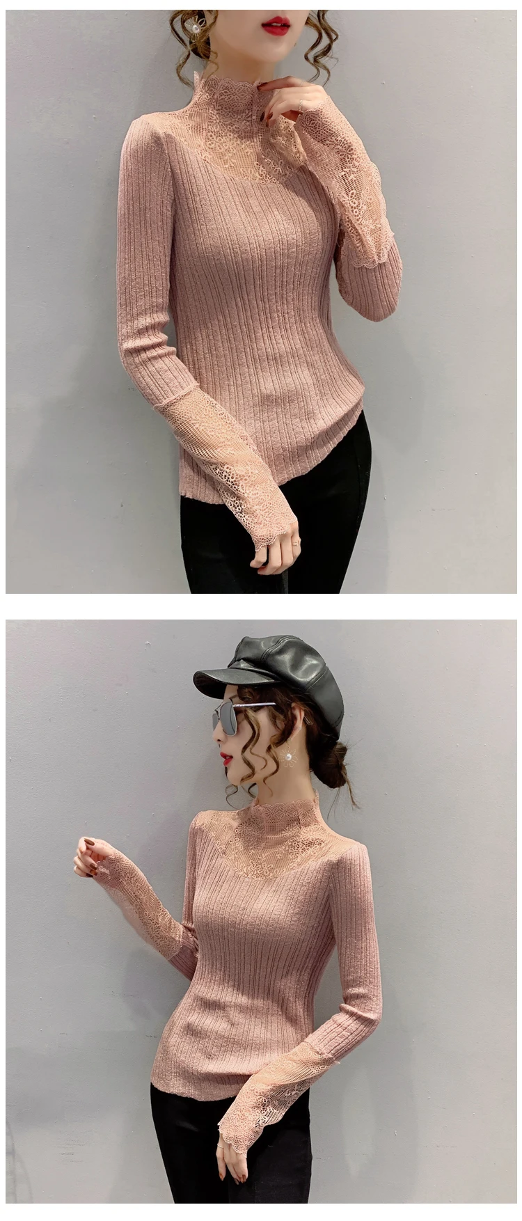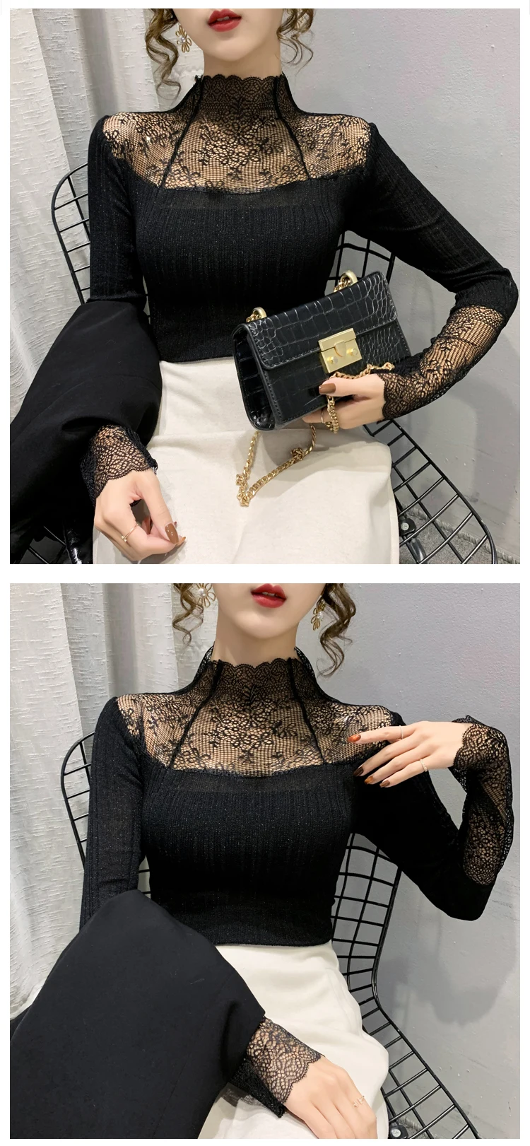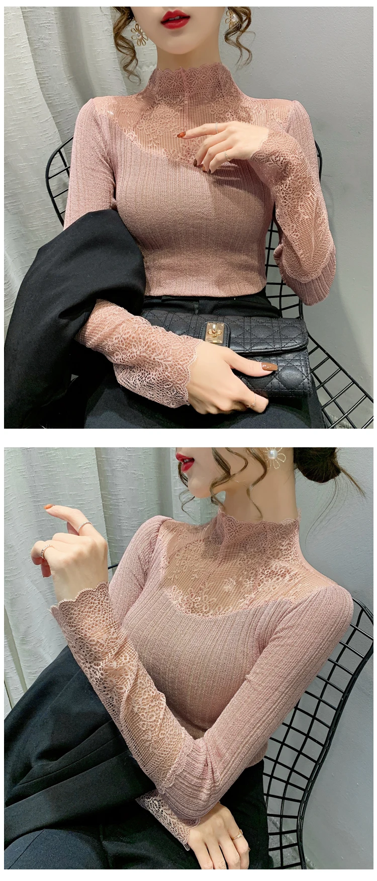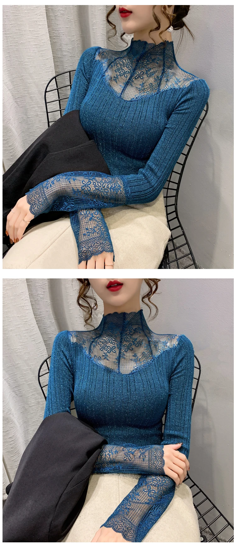 Название продукта: Модный кружевной вязаный свитер и трикотажные футболки.