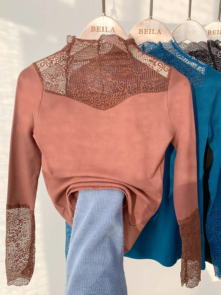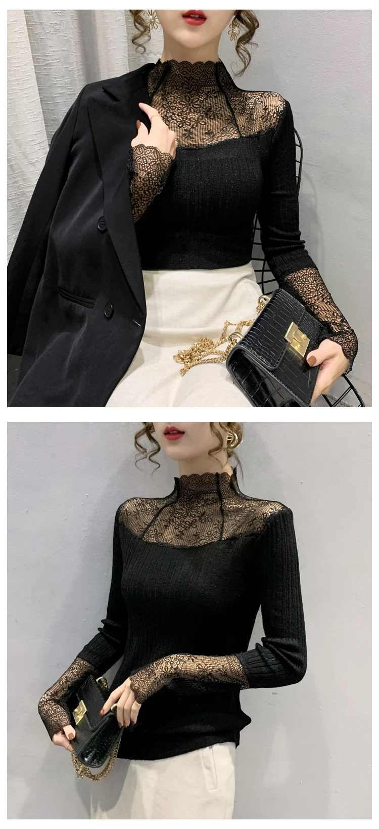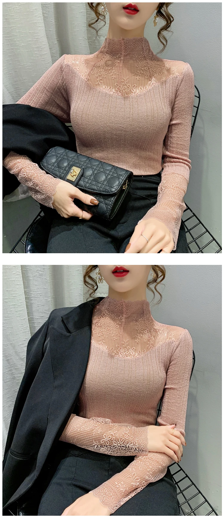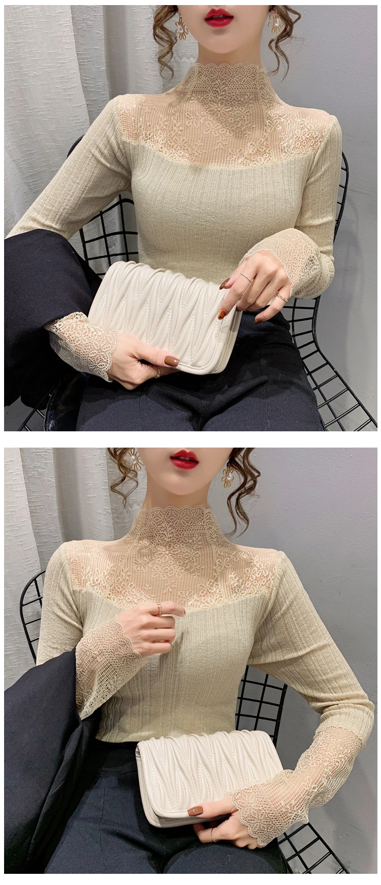 Название продукта: Модный кружевной вязаный свитер и трикотажные футболки.