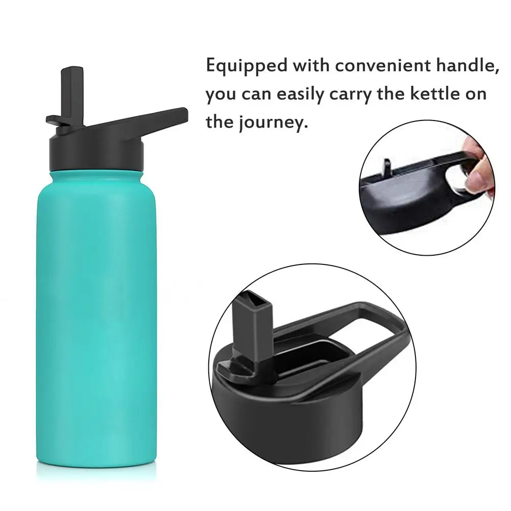 Соломенная крышка с откидной крышкой, 12-64 унции, с широким горлом, крышка для бутылки с водой, вакуумная фляга из нержавеющей стали для универсальной бутылки с широким горлом для воды