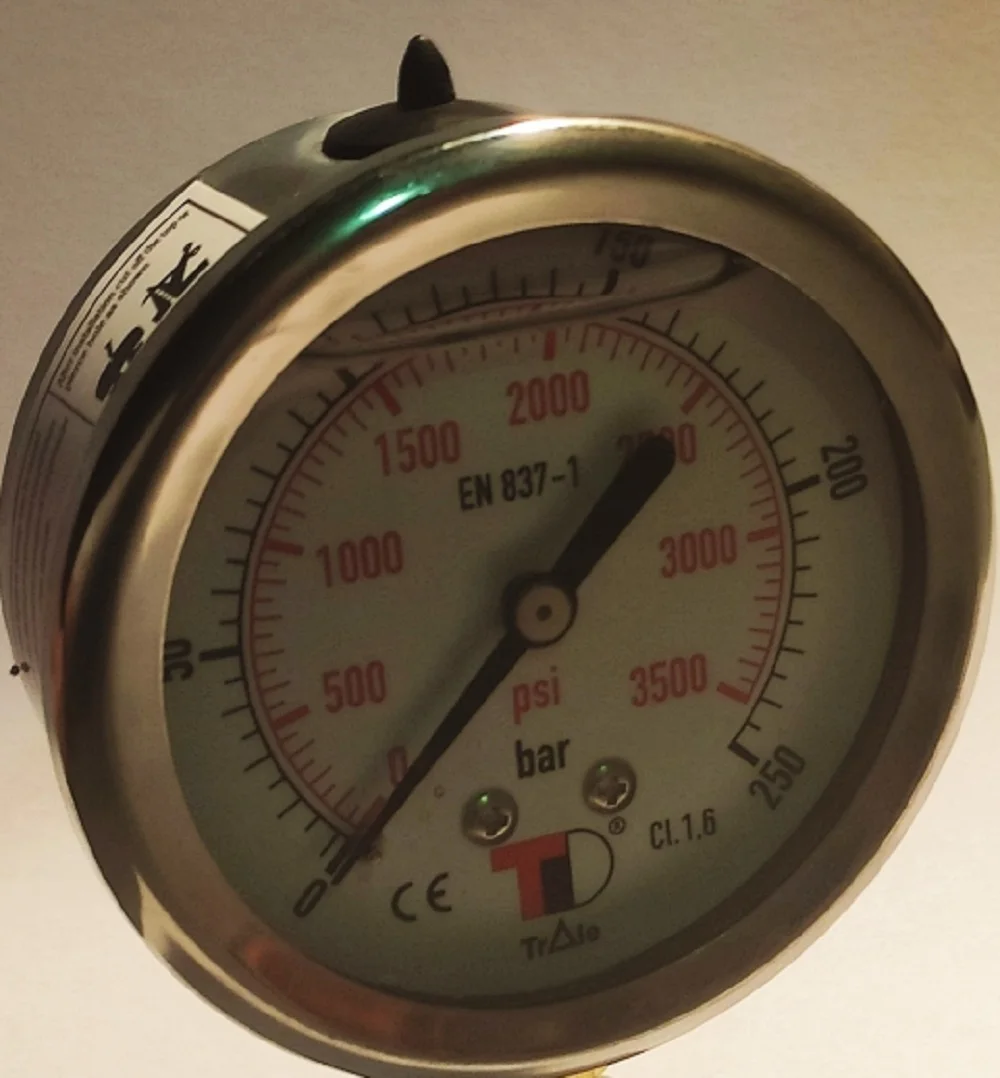 Манометр 250 бар или 100 бар или 400 бар диаметр 63 мм присоединение 1/4 дюйма Испания