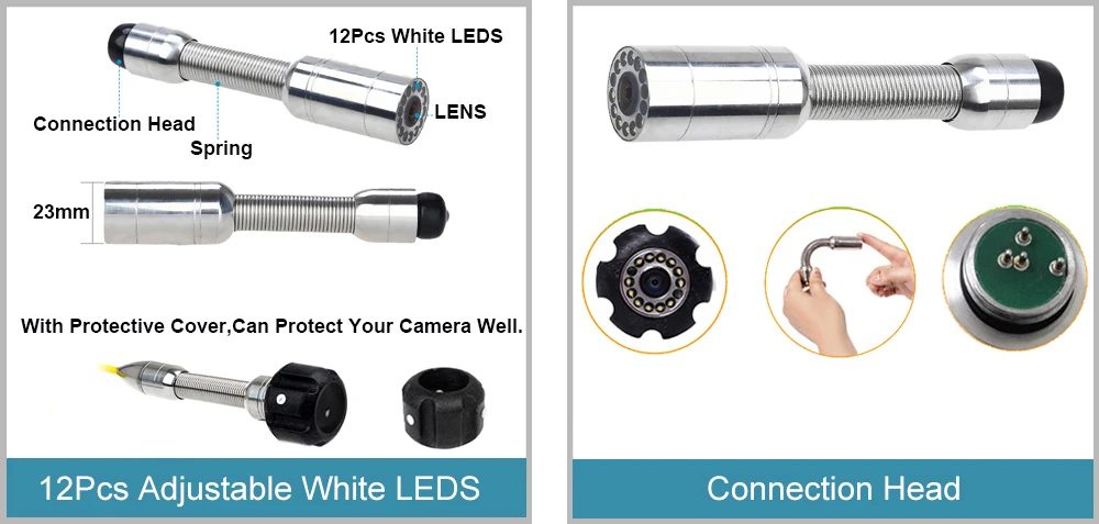 Этот продукт подходит для осмотра трубопровода, канализационных труб, воздуховодов, резервуаров, подводных и других темных условий, проверки внутренних трещин, коррозии, сварки, затычек и других необычных обстоятельств.