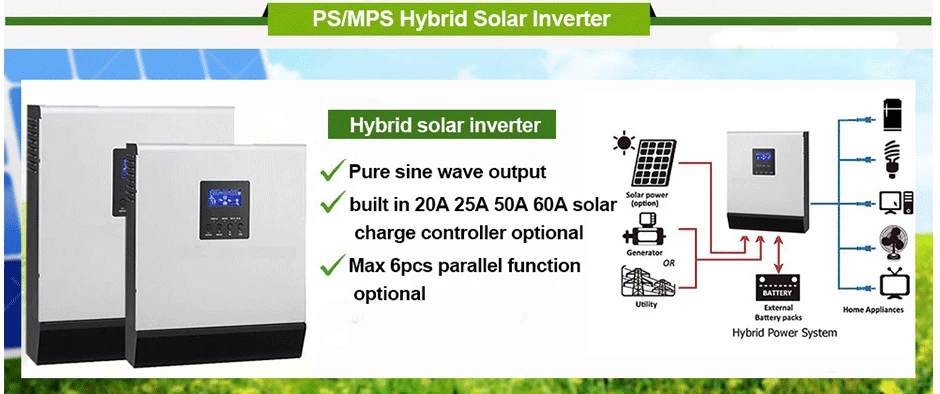 Примечание: параллельный инвертор макс. 6 шт., Макс. Выход переменного тока 30 кВА, если вам нужно, пожалуйста, закажите MPS 5k-параллельный режим.