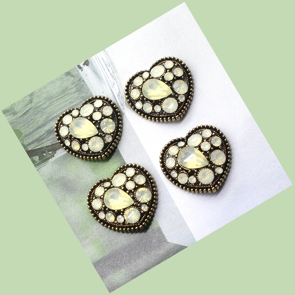 Очень блестящие аксессуары на пуговицах ручной работы в стиле ретро, Персиковое сердце, 5 шт., украшение из кристаллов, украшение ручной работы