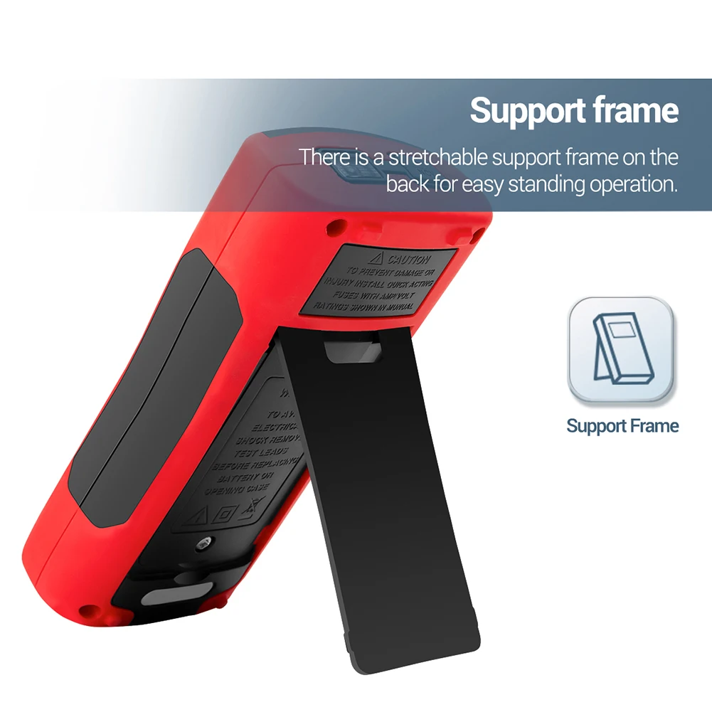 ** Задняя подставка: складная подставка облегчает работу и запись измерений.