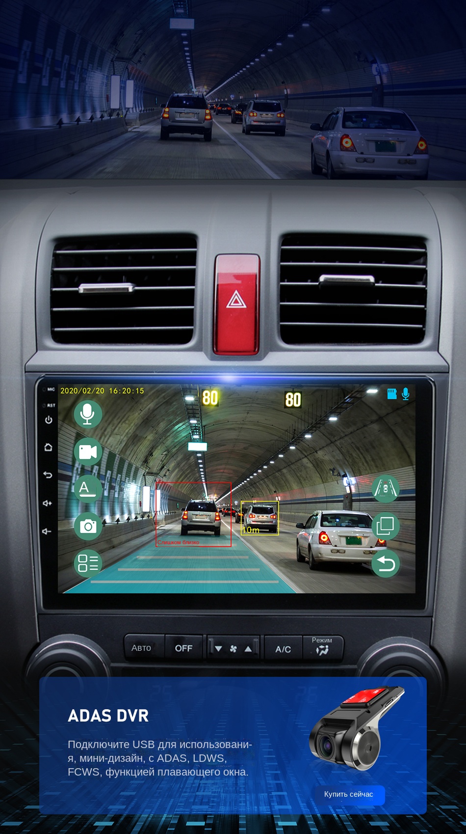 Поддерживает подключение к видеорегистраторУ ADAS. ADAS DVR имеет несколько встроенных ассистивных технологий вождения, вставляя высококачественную карту памяти TF для записи каждого момента вашего вождения.