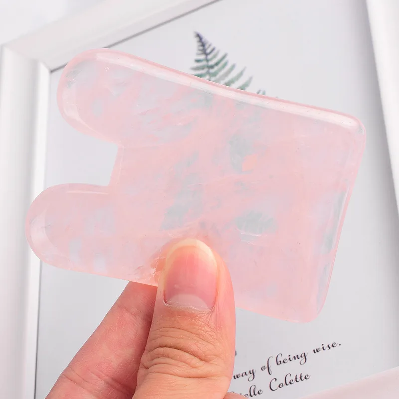 Розовый кварц guasha антивозрастной эффект 1. Снимает напряжение лица 2. Улучшает эластичность кожи и тонизирует кожу 3. Препятствует появлению тонких линий и морщин 4. Уменьшает отечность, мешки для глаз и темные круги вокруг глаз 5. Помогает проникнуть в косметику, как кремы для лица и сыворотки глубже в кожу для лучшего поглощения 6. Способствует циркуляции крови к лицу для естественного здорового свечения