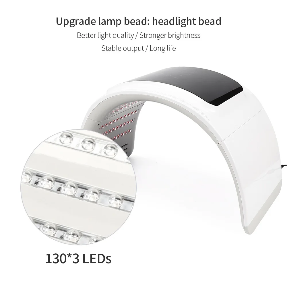 1. Принимает светодиодный светильник терапии для ускорения кровообращения кожи для анти-старения, без побочного эффекта, здоровый и безопасный. 2.7 видов цветов светильник, который имеет различные длины волны для светильник лечения проблемной кожи. 3. Обновление лампа шарик: 130*3 светодиода большой шарик. Лучше светильник качества, сильнее, яркость, стабильную выходную мощность, длительный срок службы. 4. Интеллектуальная панель управления, простая в эксплуатации. Удобная и безболезненная. 5. Хороший инструмент для ухода за кожей для решения проблем кожи, таких как желтая и темная кожа, акне, большие поры, свободная кожа.