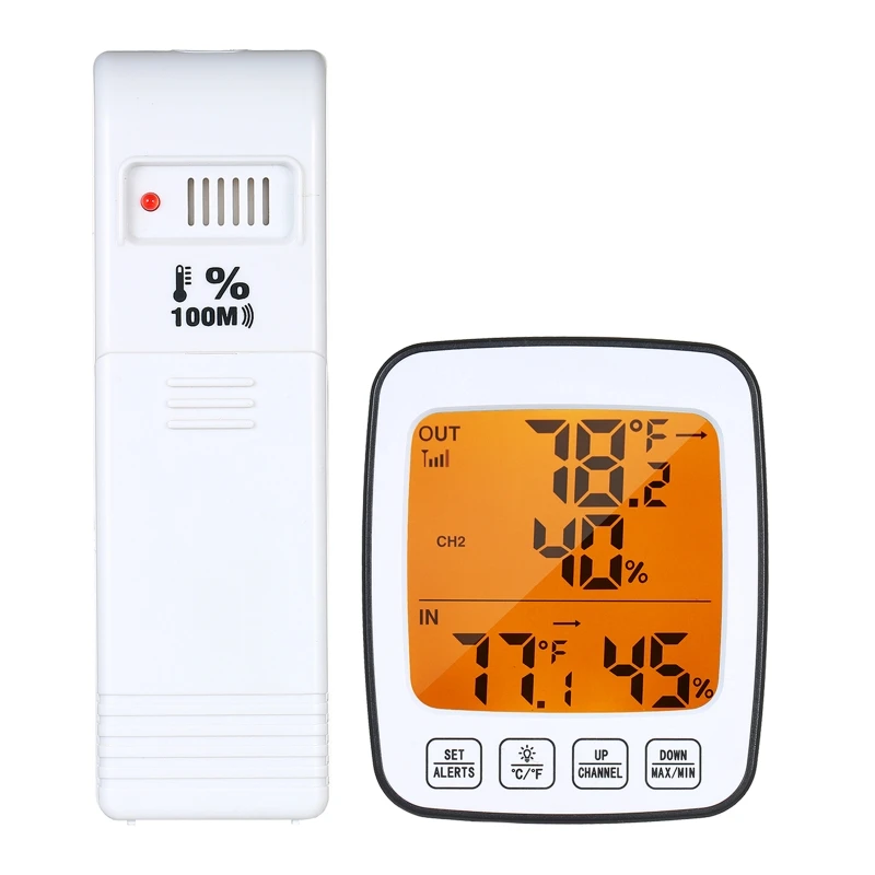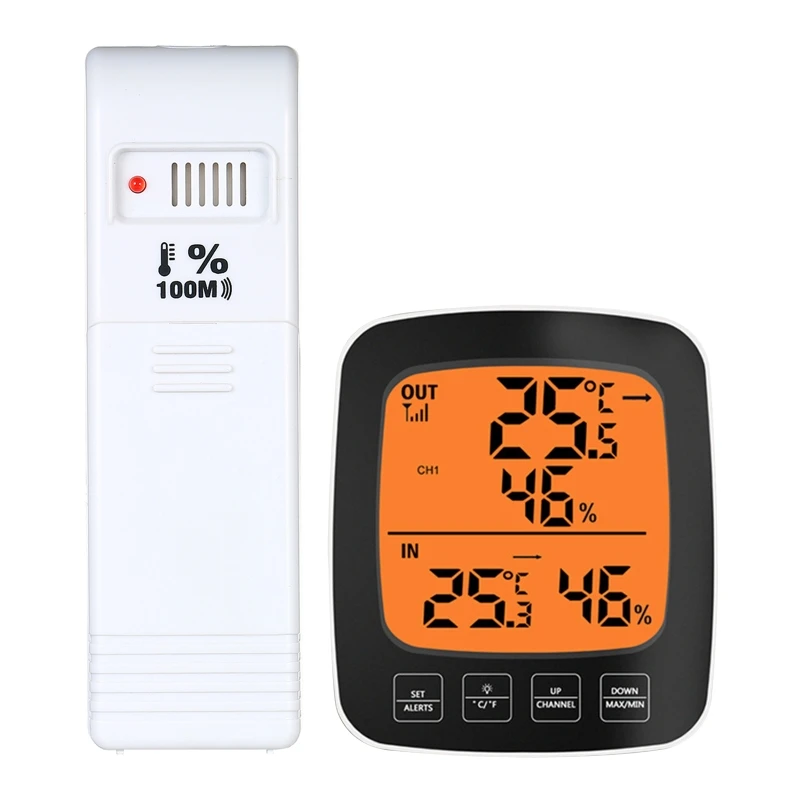 Простота в эксплуатации: разработан с 4 сенсорными кнопками для легкой работы, такими как включение/выключение подсветки, Переключение блока ℃/°F, регулировка вверх/вниз, настройка значения оповещения и т. д.