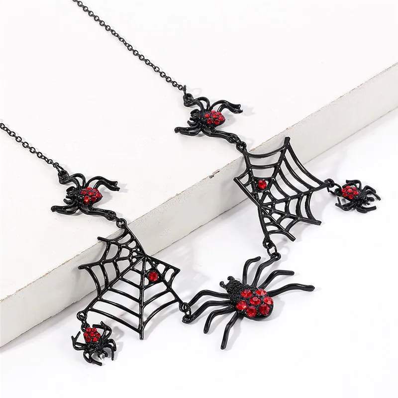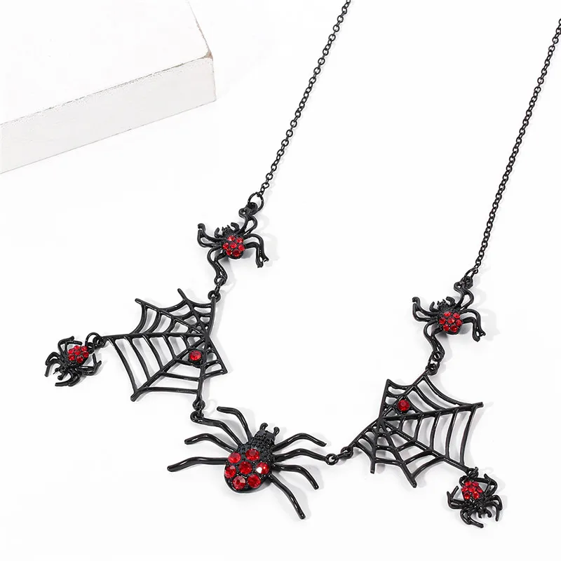 Панк готический Хэллоуин ювелирные изделия черное ожерелье с пауком Красный Кристалл Паутина праздничные украшения для женщин свитер ожерелье