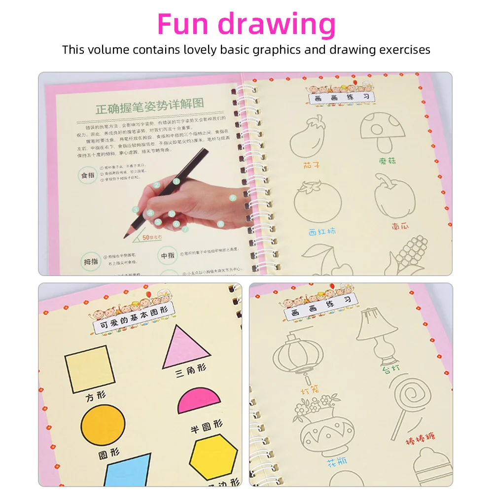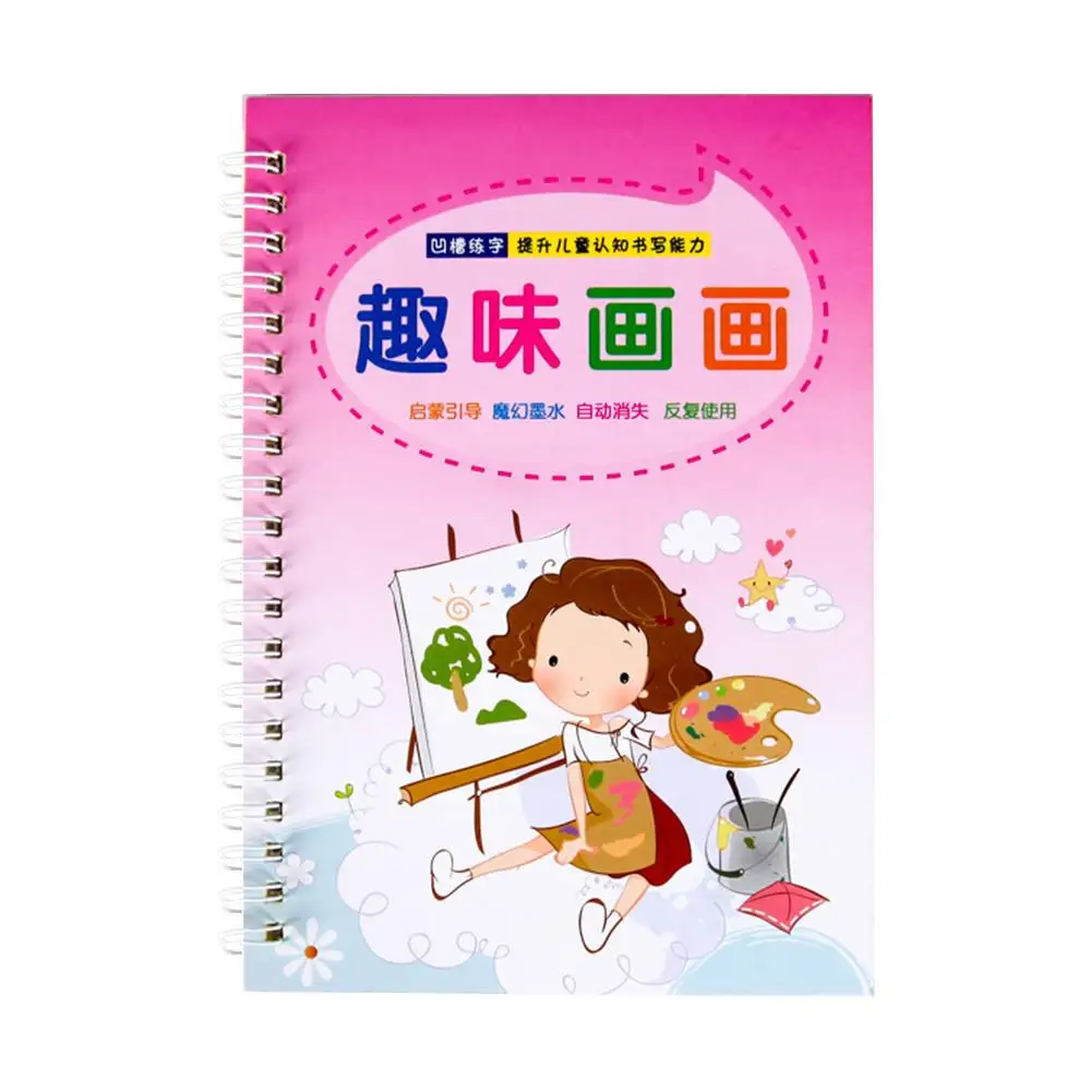 4 книги, многоразовые книги для магической каллиграфии, включая математику/живопись/письмо, магические книги, которые могут быть использованы в школе