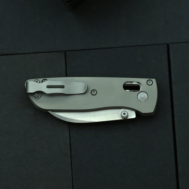 Product Details: 535mini Overall length: 146mm Blade length: 58 mm Handle length: 88 mm Blade thickness: 2.5 mm Blade width: 22 mm Blade material: s30v (Cryogenic treatment) Blade surface treatment: Stone wash Hardness: 59-60HRC Handle material: titanium alloy Net weight: 63g Package: Color box Please know: 1. Manual measurement of data may be wrong! 2. the different shooting environments will have different tones in different production lots. Please understand that you can buy again. 3. Because the image can not be fully demonstrated, all are in kind! If you would like to know more product information, please contact us! Thank you!