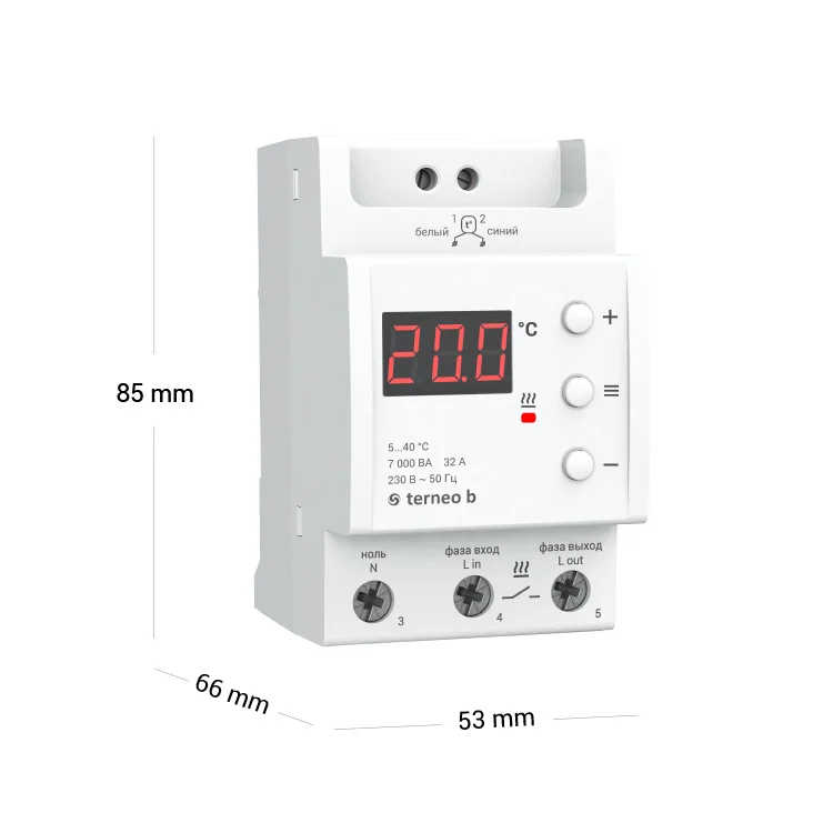 The terneo B thermoregulator is designed to work with "warm floor" systems based on an electric heating cable. A feature of this model is the ability to use it with high rated power systems (up to 6000 VA). The thermoregulator allows you to maintain the set temperature from 5 to 40 ° C. Temperature data comes from a sensor placed in the floor.